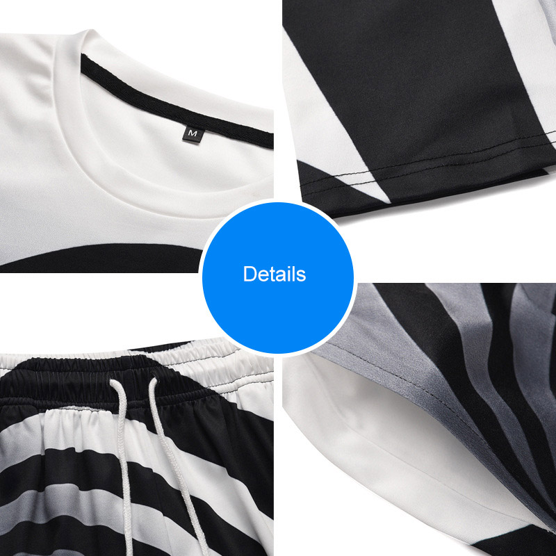 3D Spiral Print Tee and Shorts Set 88211592527#