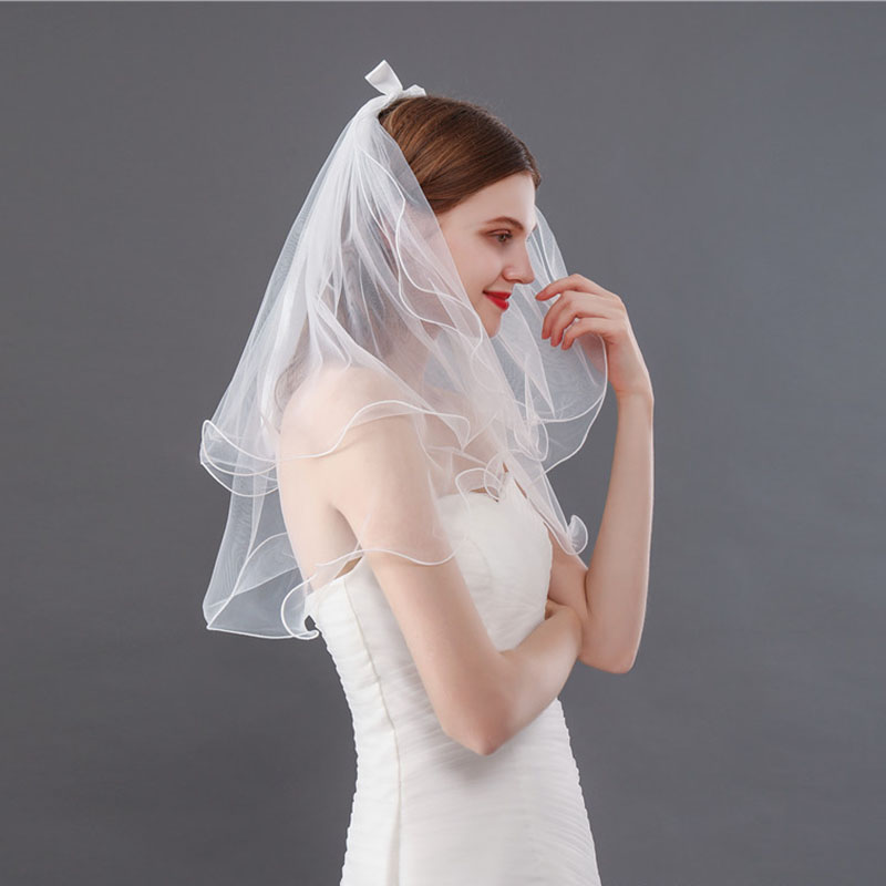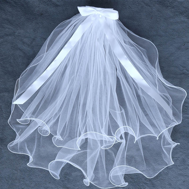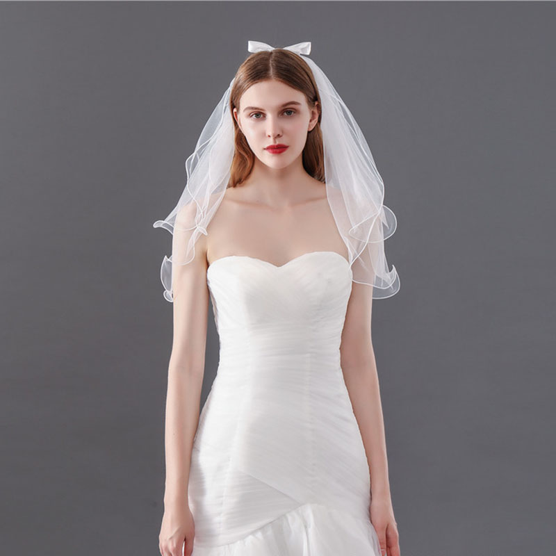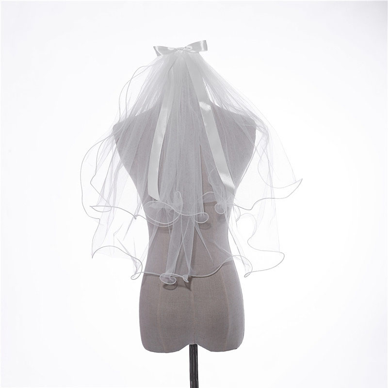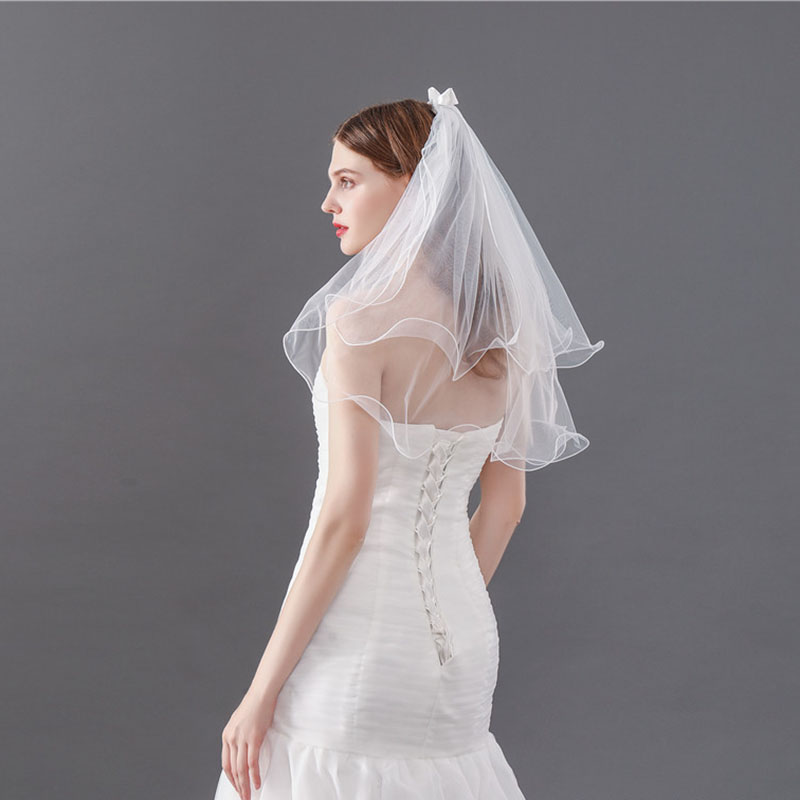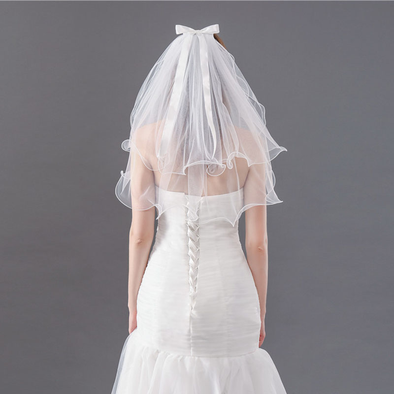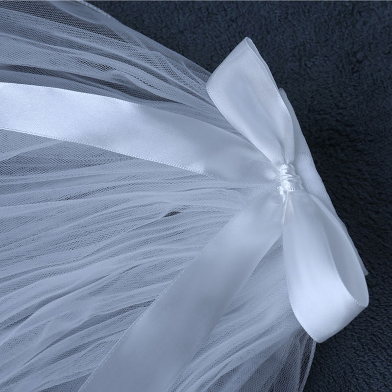 • A Bow Two-Layer Bridal Veils With Comb 88211592211#