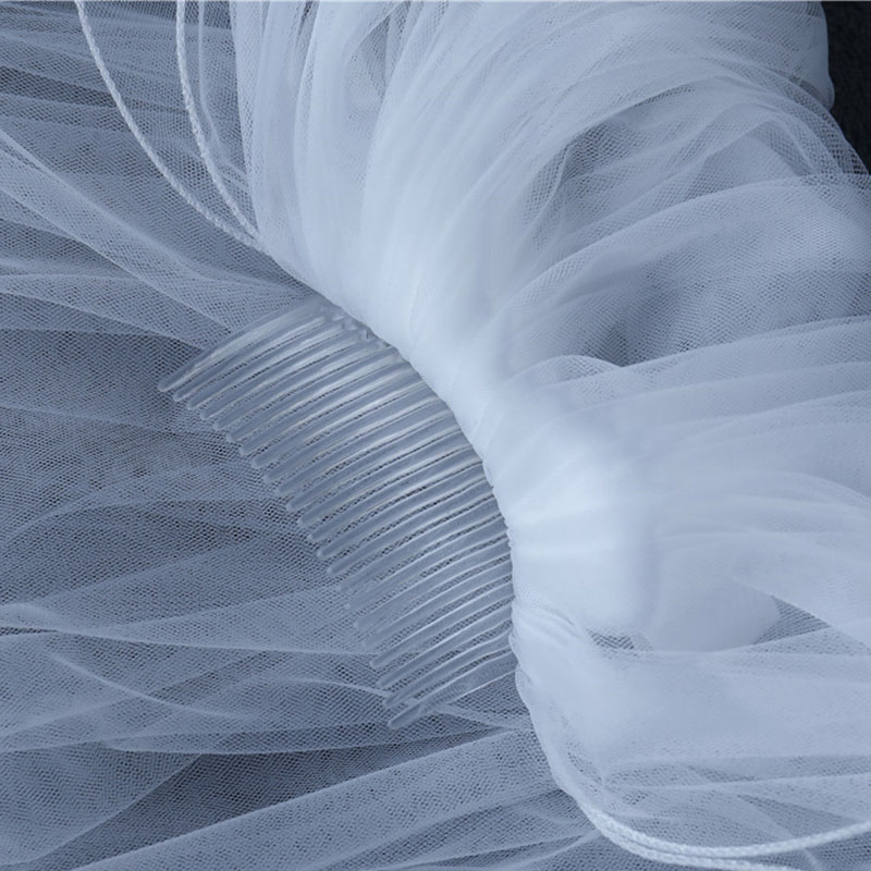 A Bow Two-Layer Bridal Veils With Comb 88211592211#