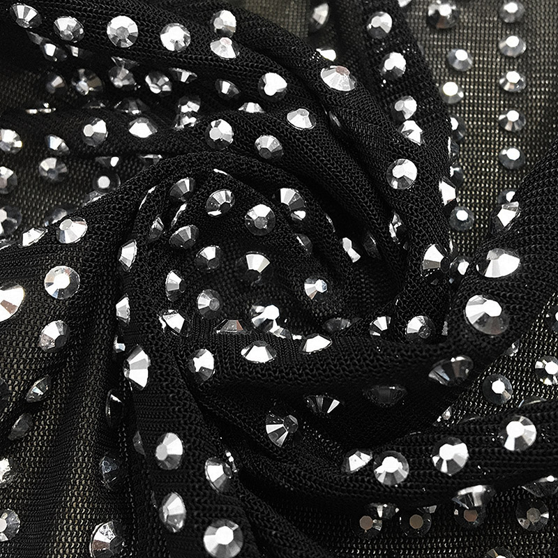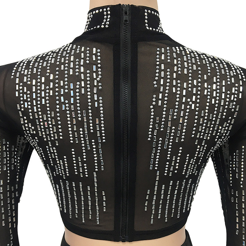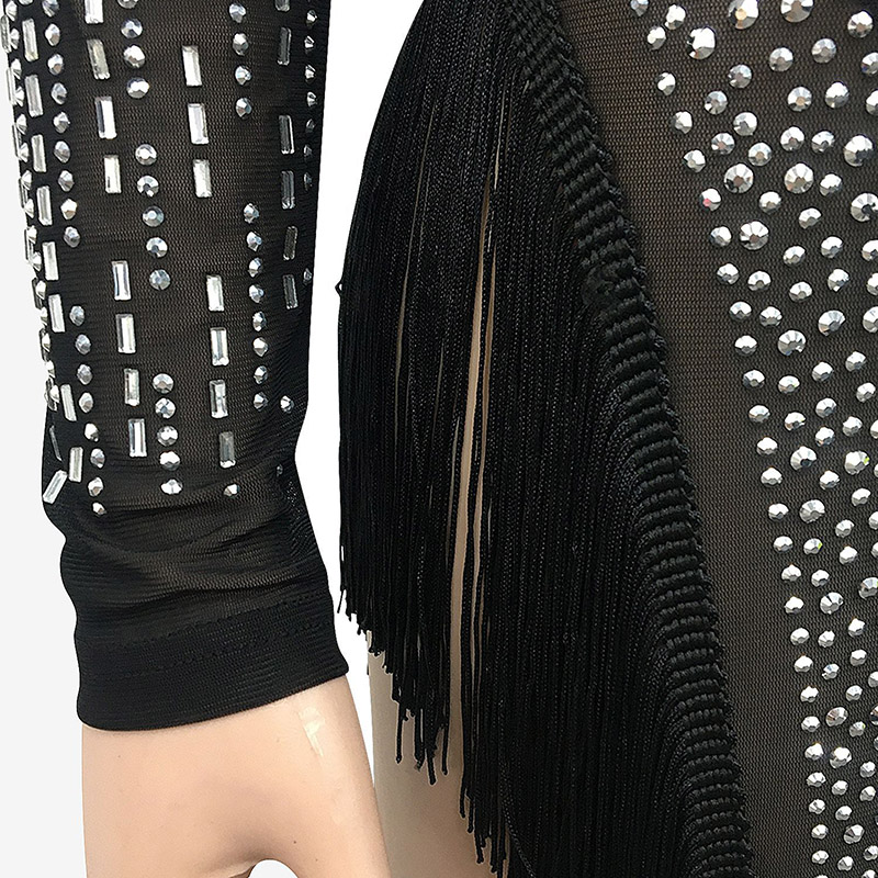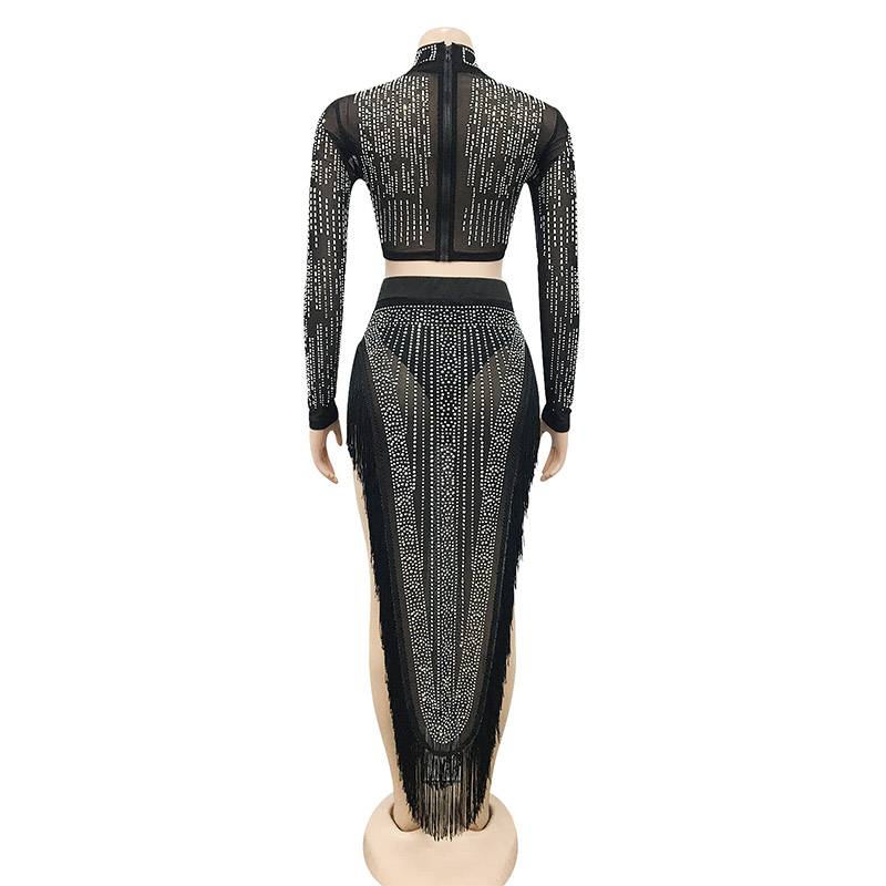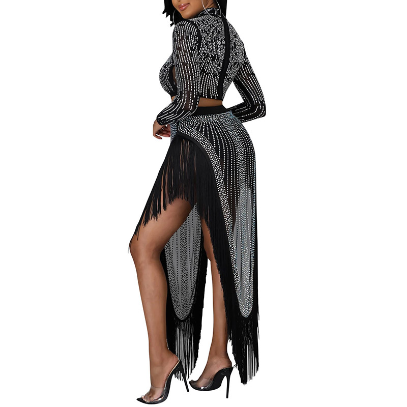 Details:Rhinestone,Split Thigh,Fringe Hem,Two-Piece