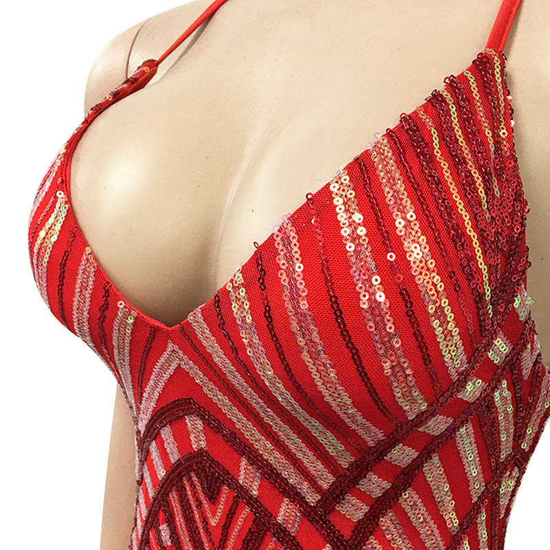 Details:Sequin,Spaghetti Strap,V Neck,Criss Cross,Backless,Drawstring