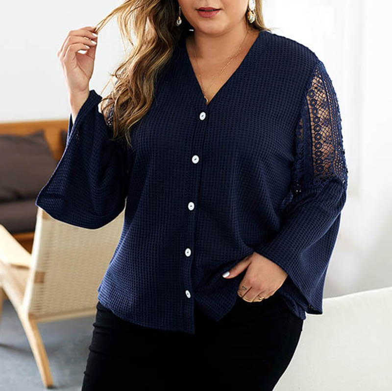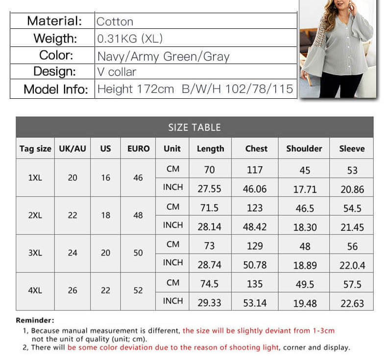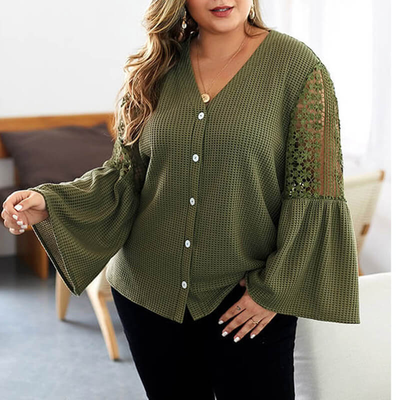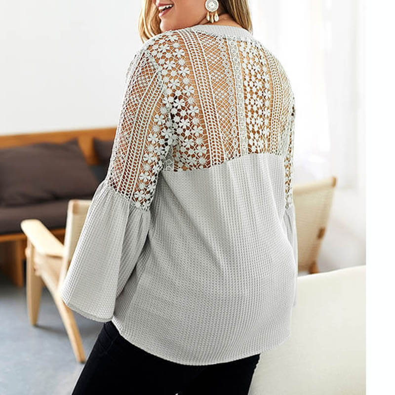 Details:Plus Size,Hollow Out,Bell Sleeve