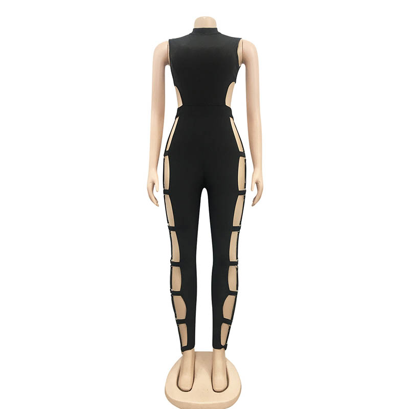 • Black Hollow Out Open Back Jumpsuit 88211592462#