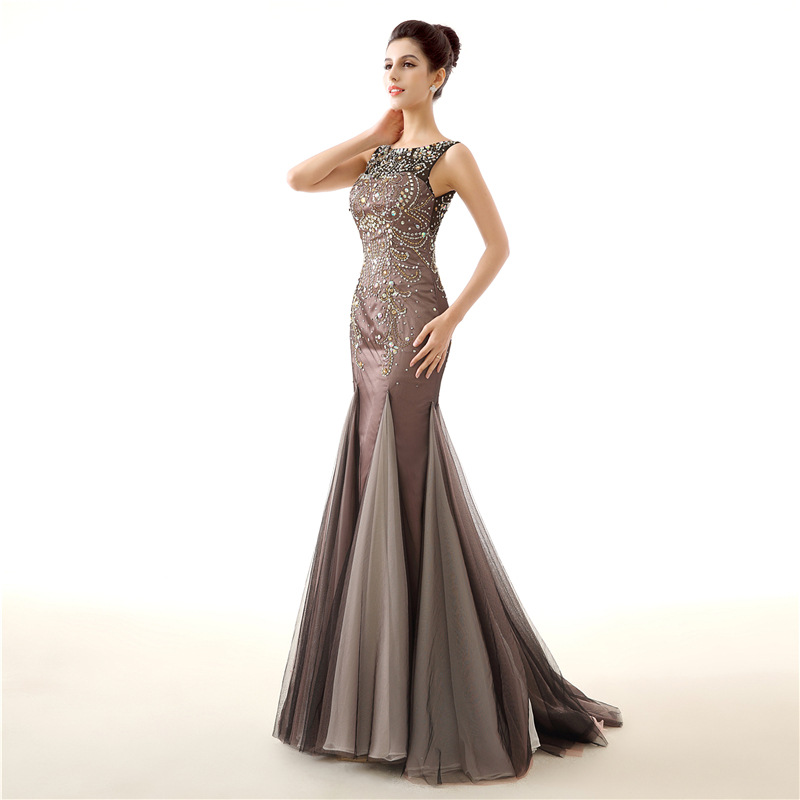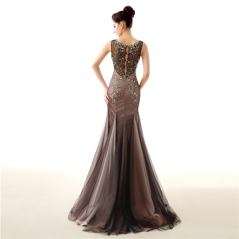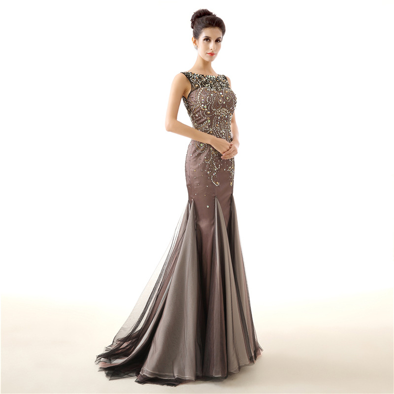 Boat-Neck Sleeveless Beaded Tulle Overlay Illusion Gown #88211592163