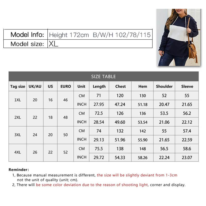• Color Block Plus Size Hoodie for Women 88211592429#