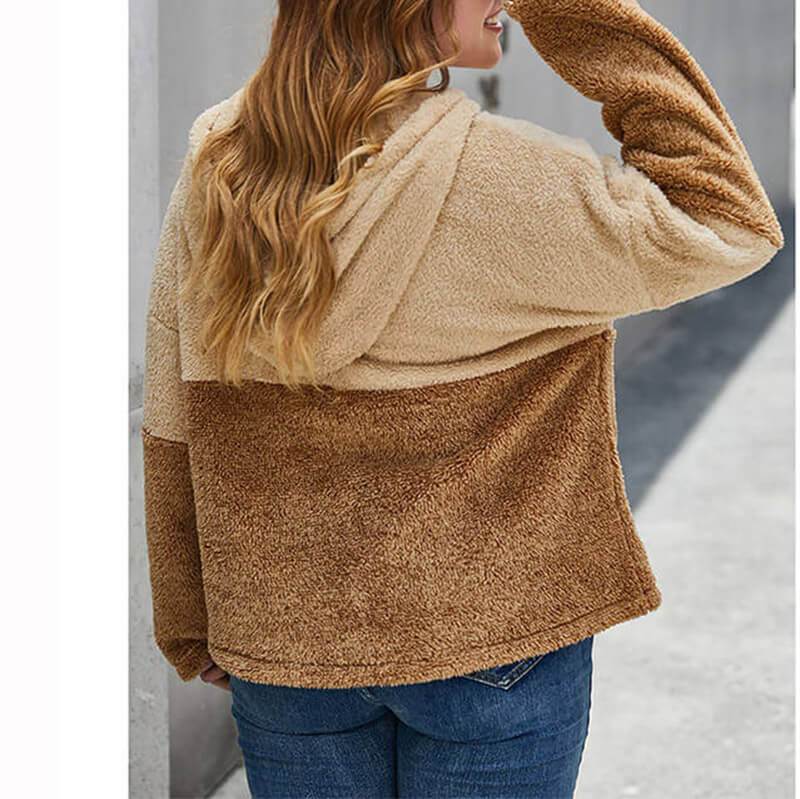 • Color Block Teddy Hoodie Plus Size 88211592401#