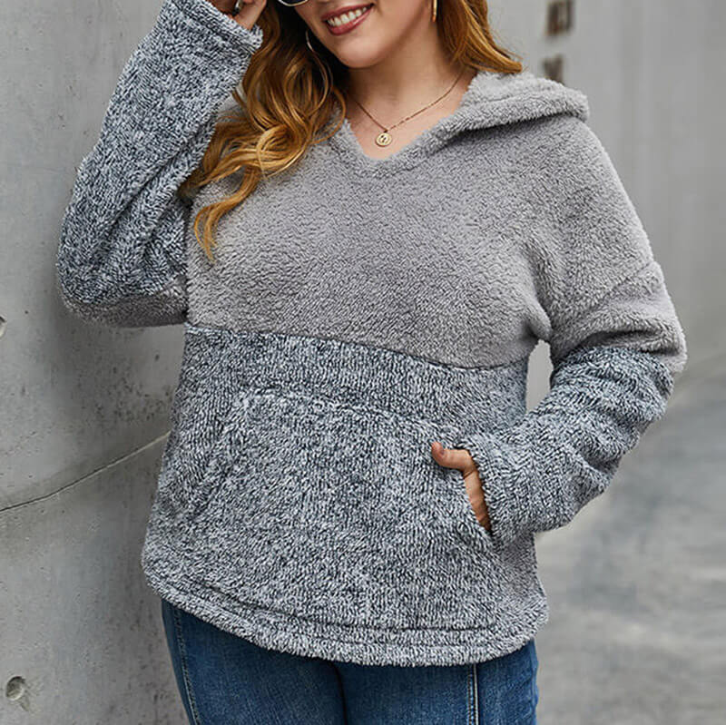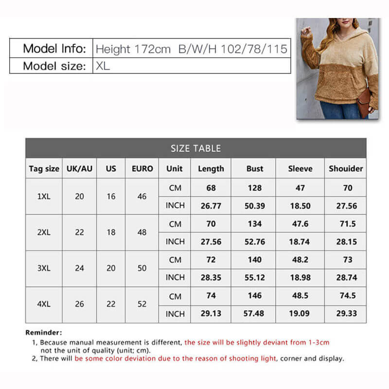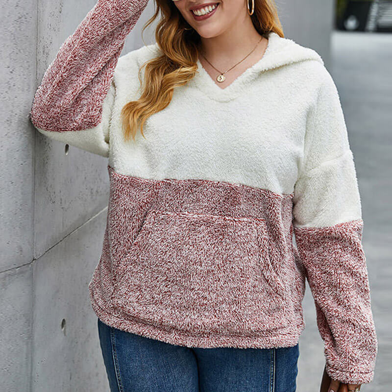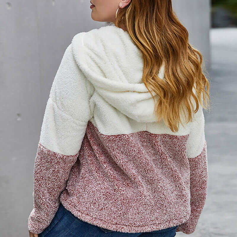 Color Block Teddy Hoodie Plus Size 88211592401#