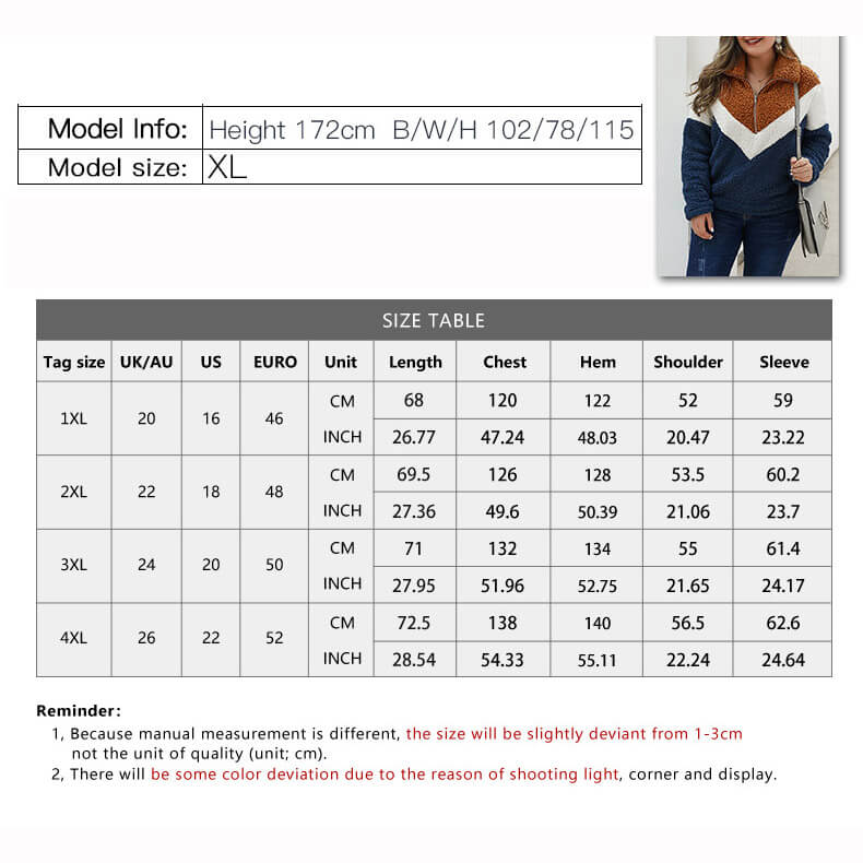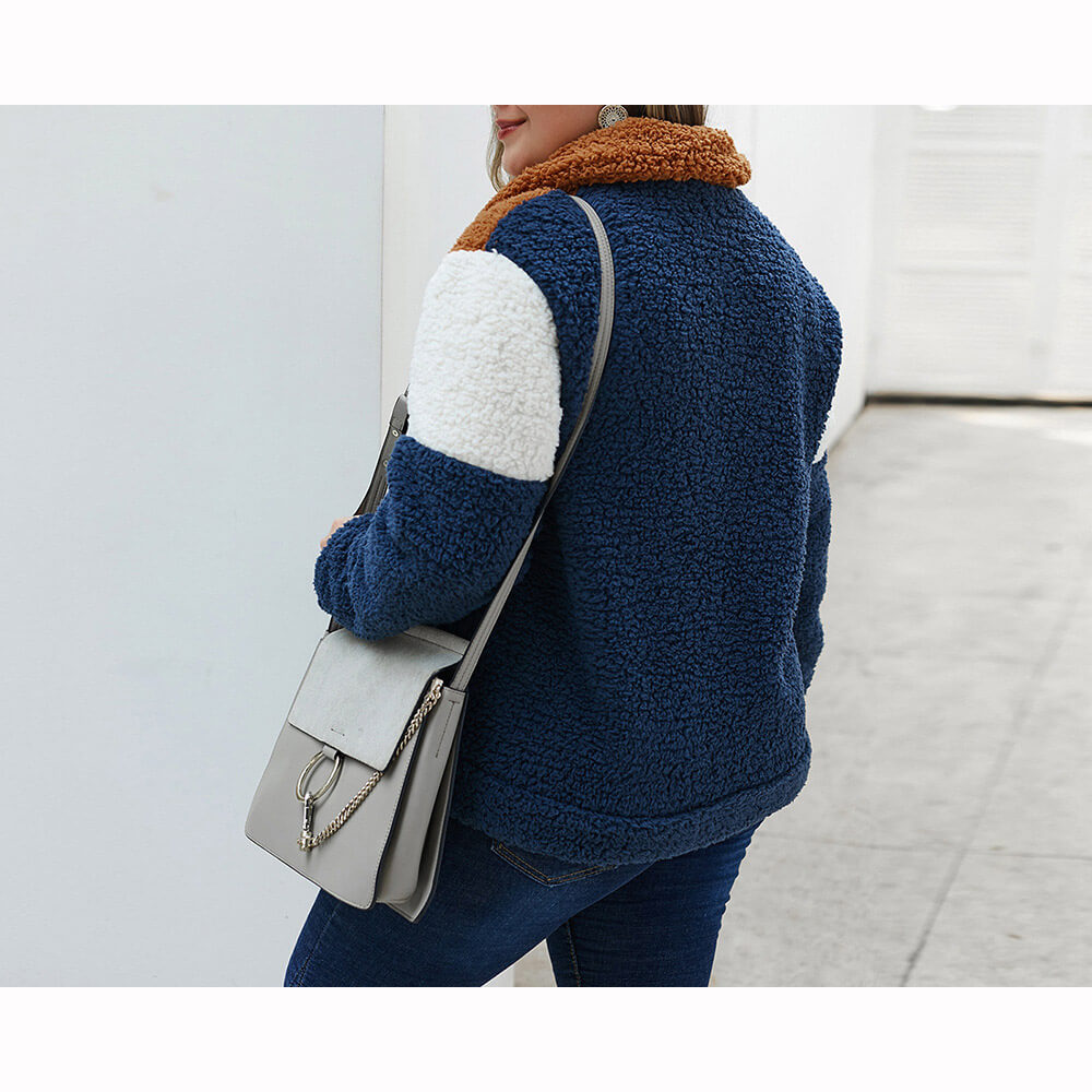 • Color Block Teddy Jacket Plus Size 88211592405#