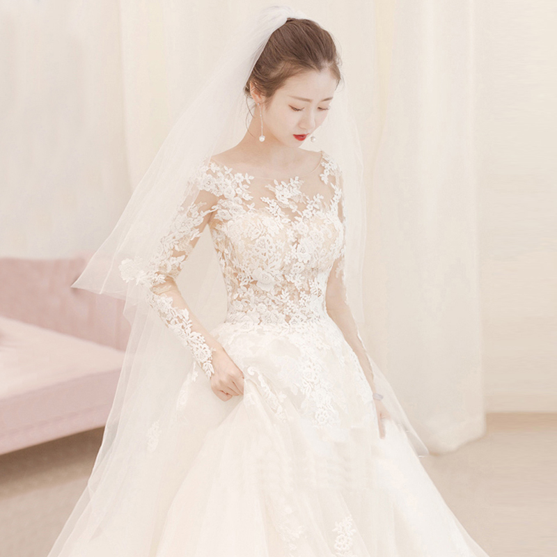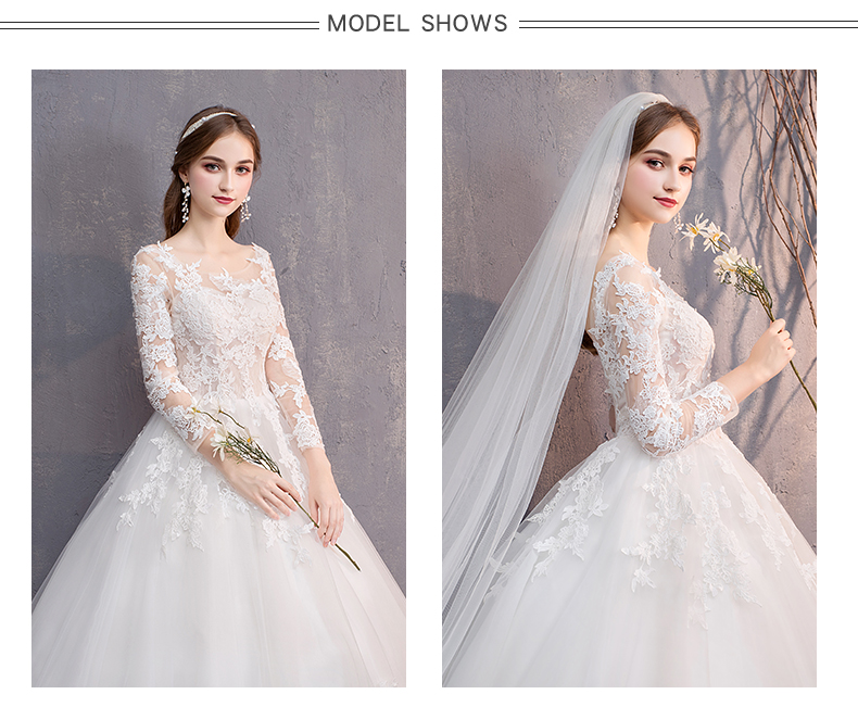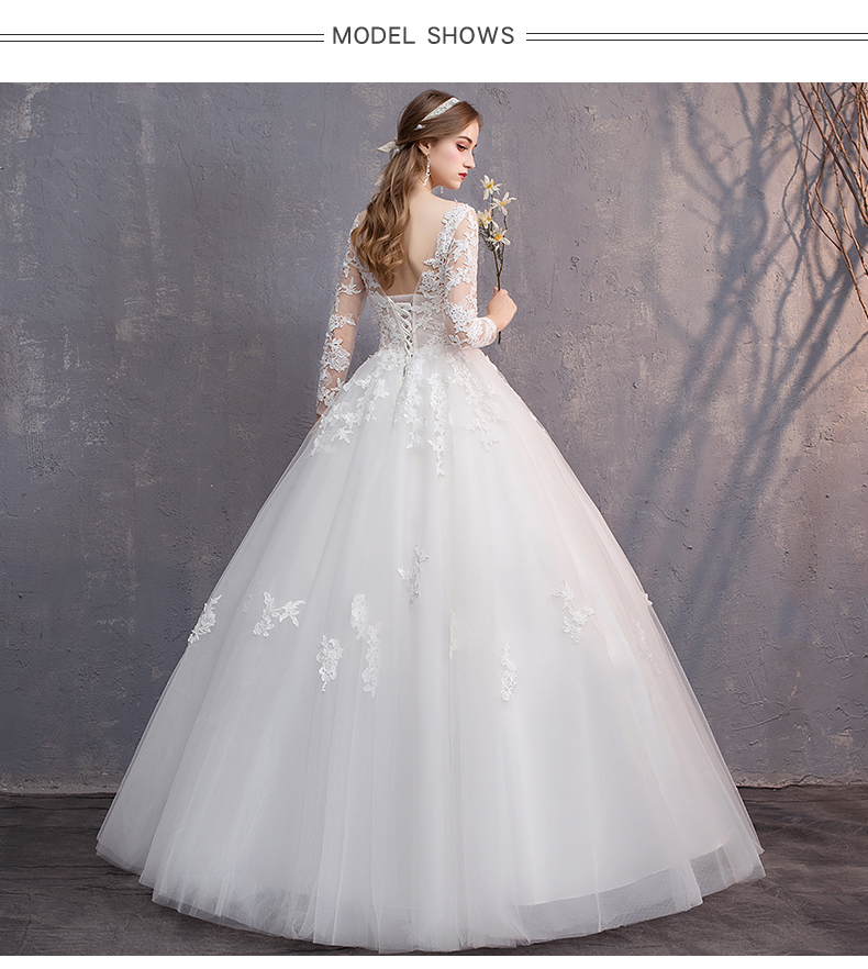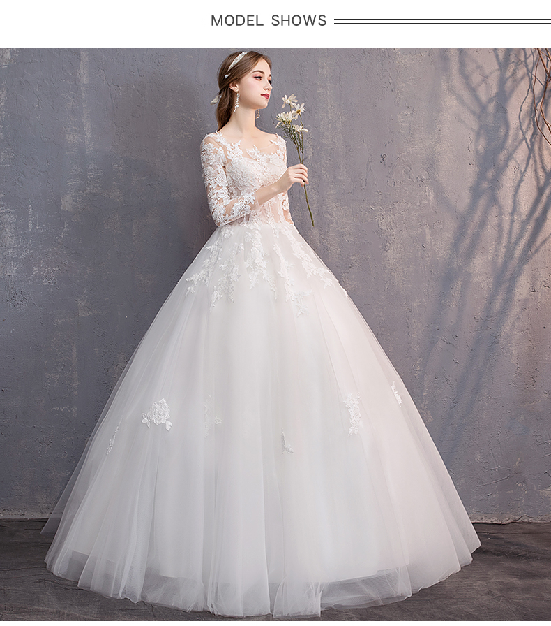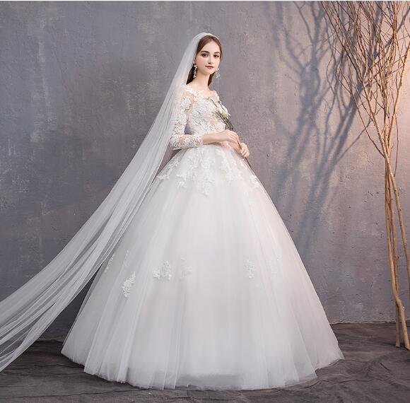 Elegant Lace Ball Gown Wedding Gowns Long Sleeve Bridal Wedding Dress #8434415850