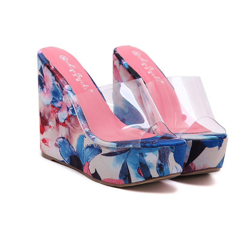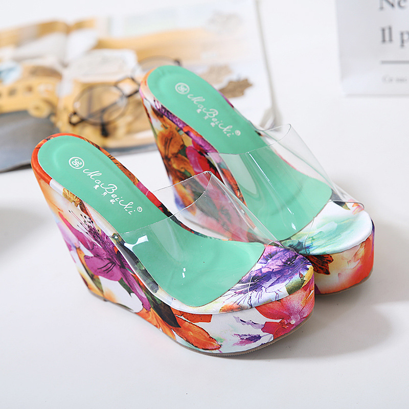 • Floral Print Open Toe Slip On Platform Wedge Sandal #88211592251