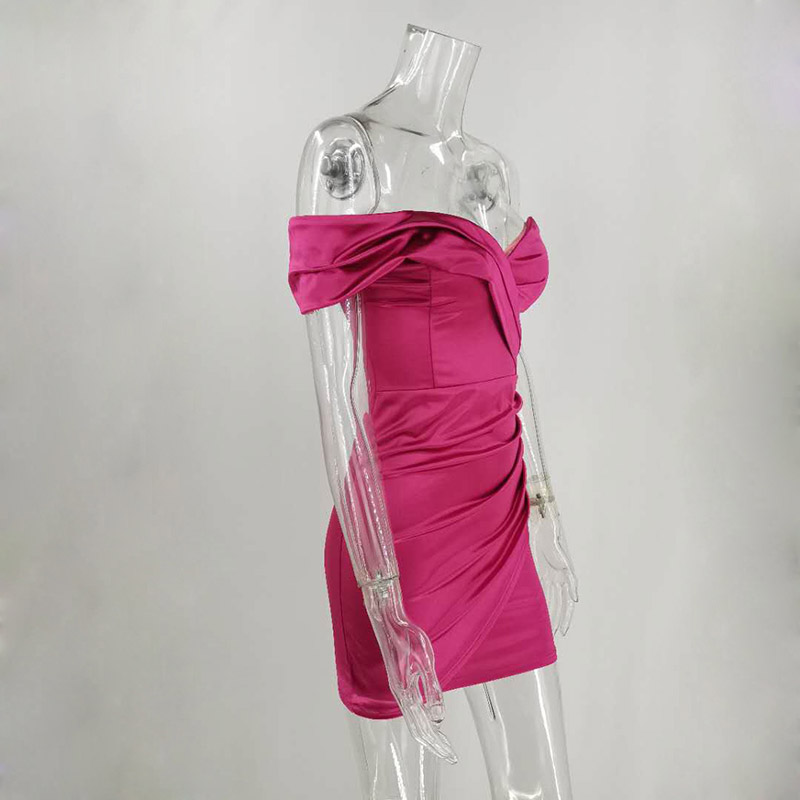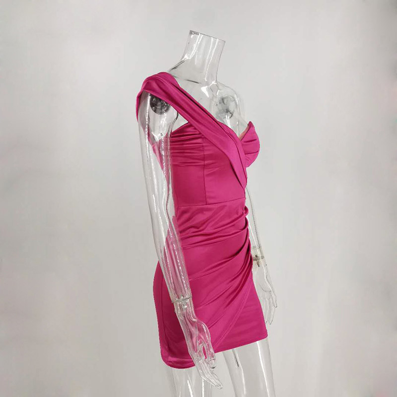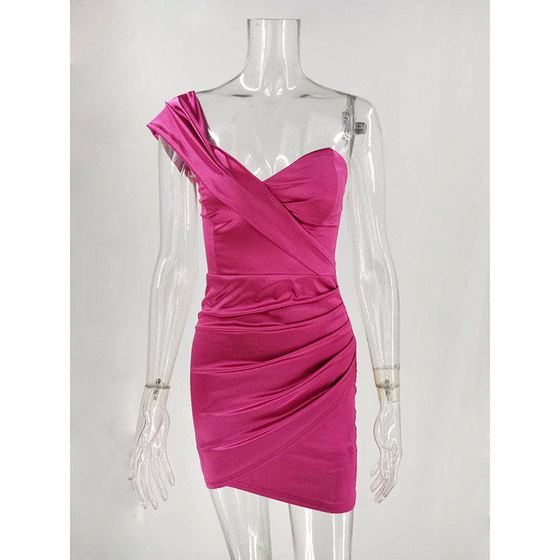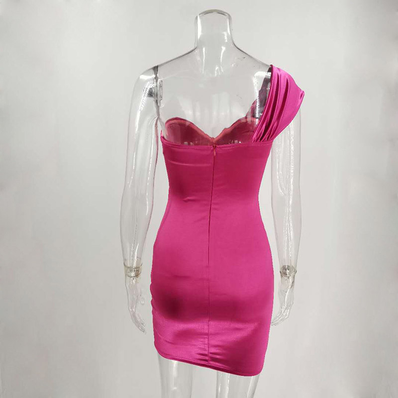 • Fuchsia Black Mini Dresses One Shoulder Dresses 88211592238#