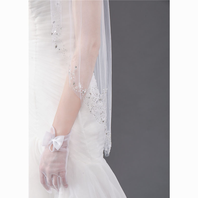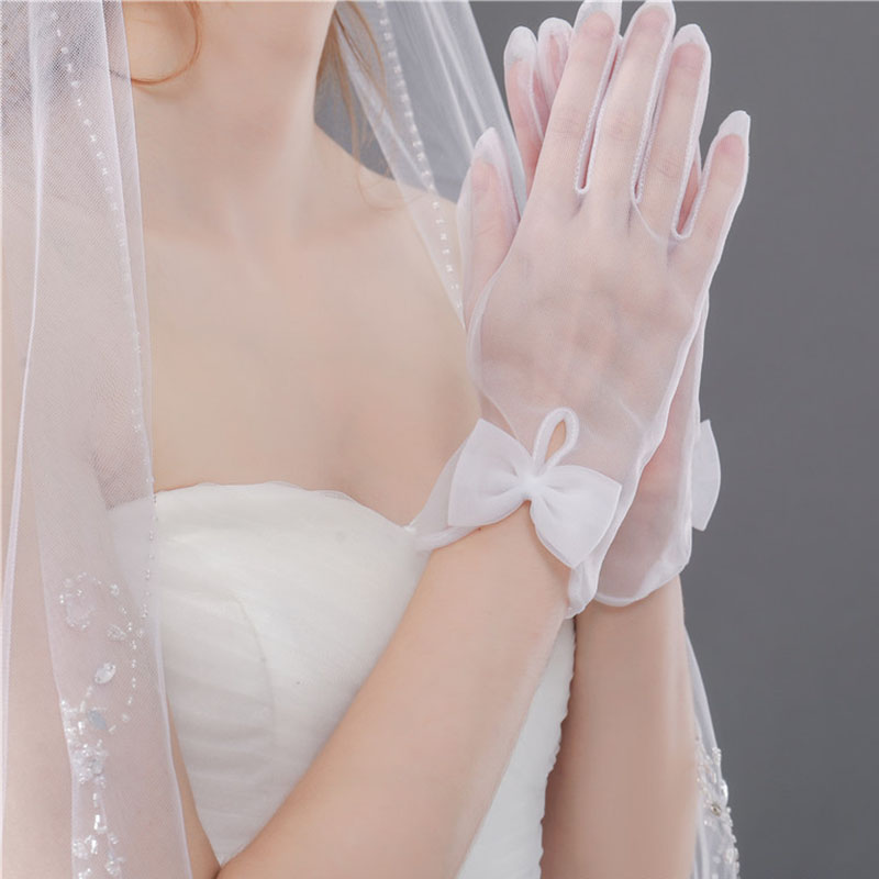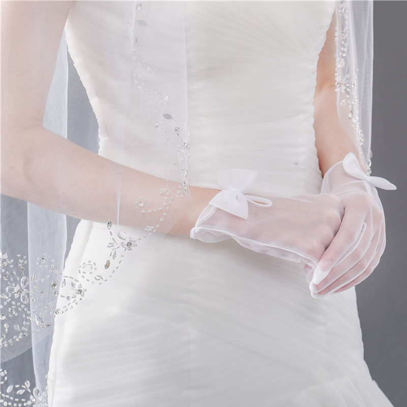 Full Finger Wrist Length Sheer Tulle Bridal Gloves 88211592213#