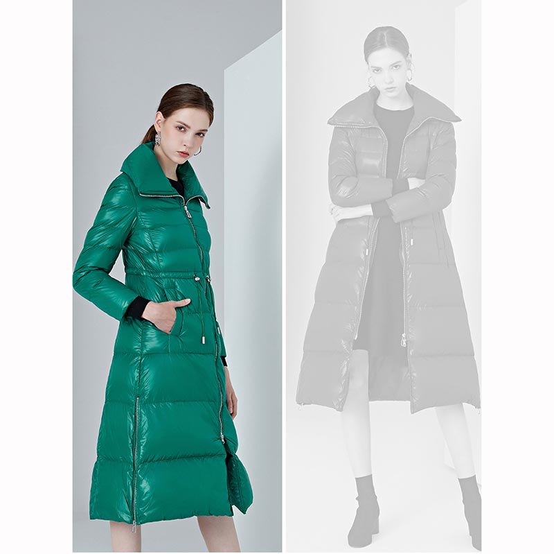 • High Quality Thicken Knee Length Zip Up Puffer Jacket for Women 88211592360#