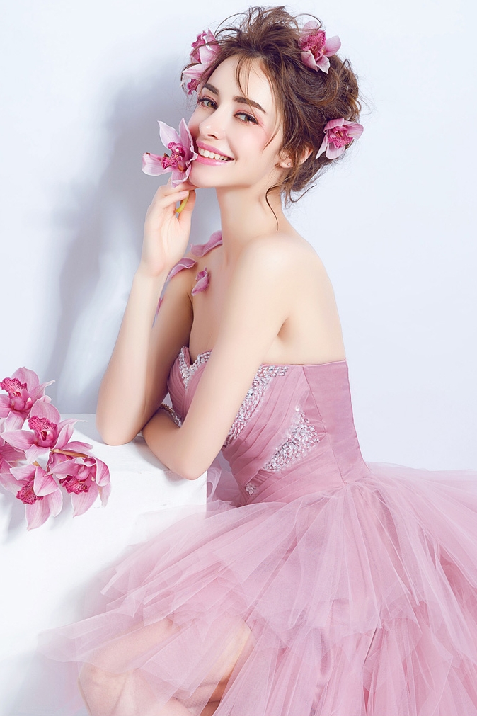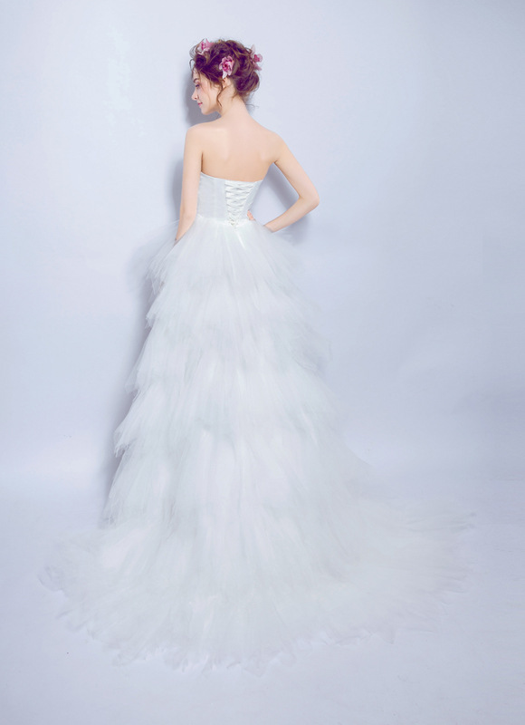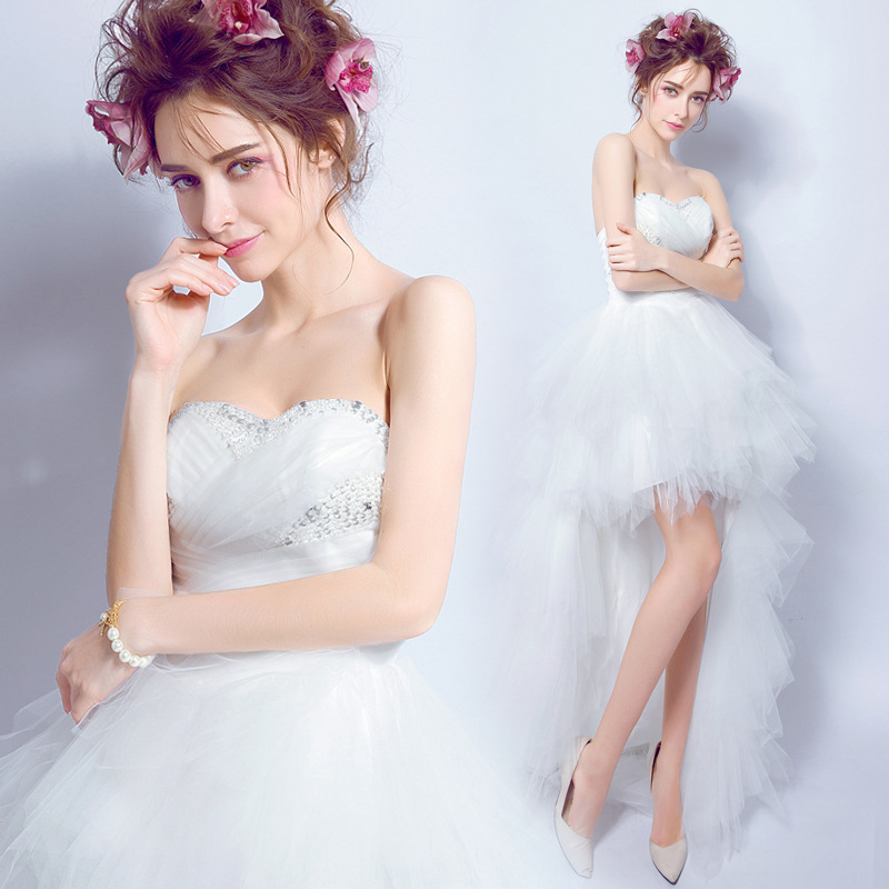 Hi-Lo Wedding Gowns Beaded Sequins Sweetheart Sleeveless Ball Gown Wedding Dresses 8470351616#