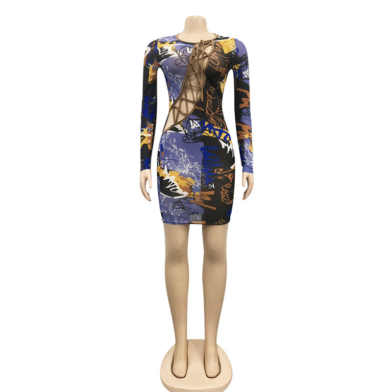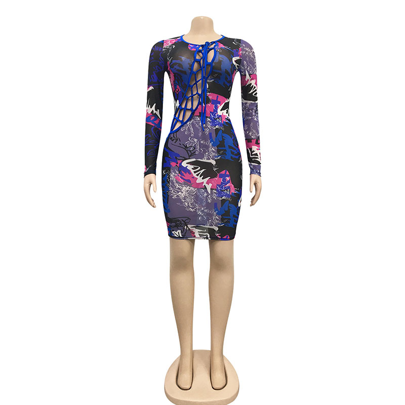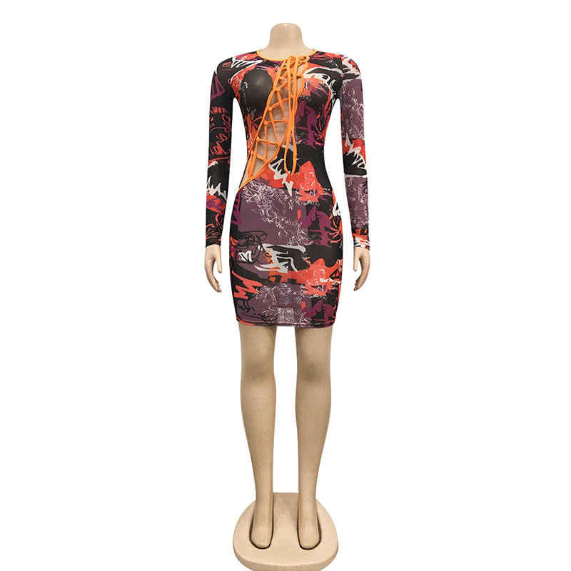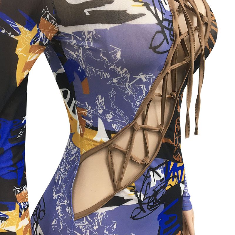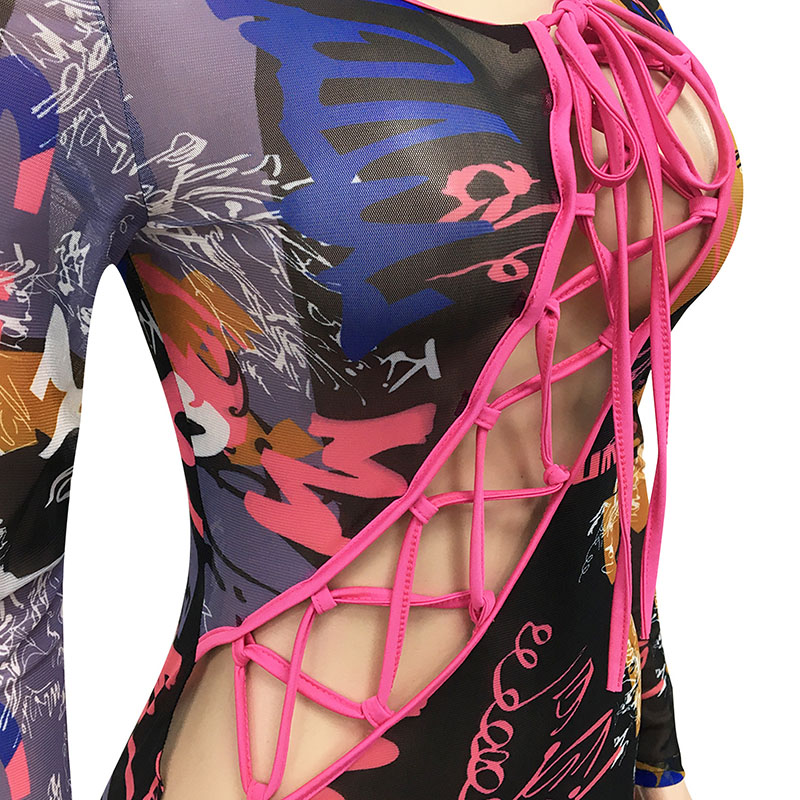 Details:Tie Front,Hollow Out,Lace-Up,Bodycon,Tie Dye