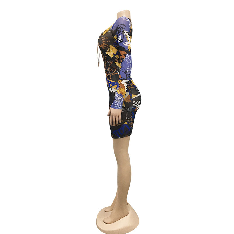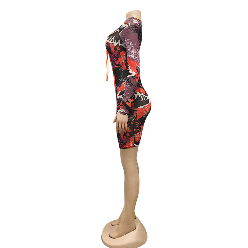 Hollow Out Bodycon Mini Dress-Tie Dye #88211591111