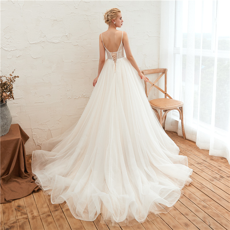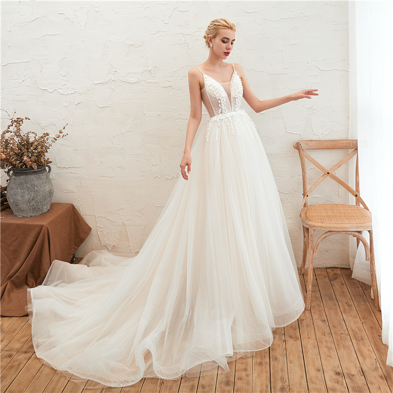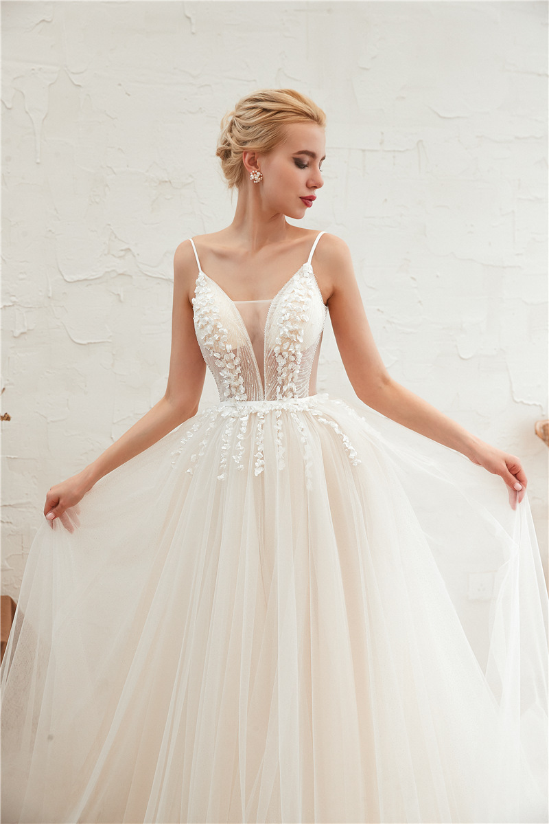 Illusion Petals Sparkly A Line Wedding Dresses 88211592285#
