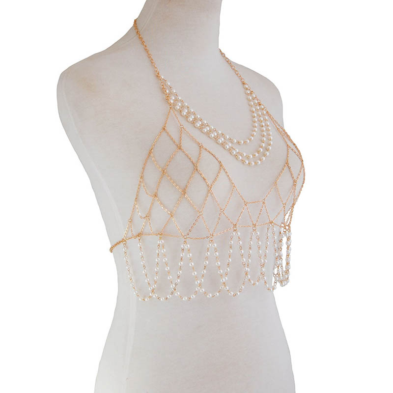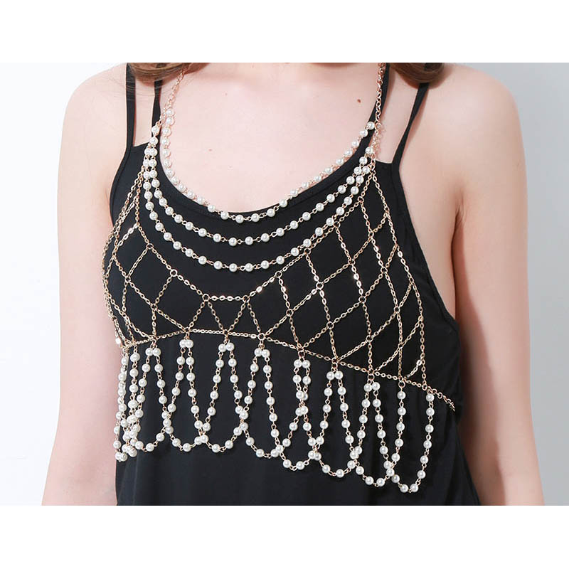 • Imitation Pearls Body Chain in Gold/Silver 88211592481#