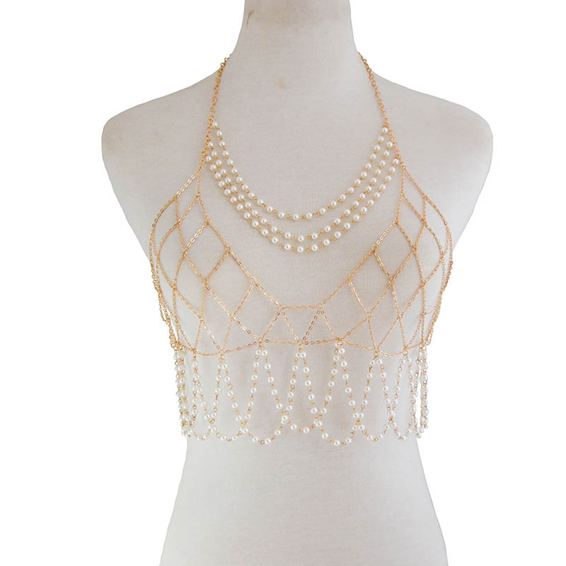 Imitation Pearls Body Chain in Gold/Silver 88211592481#