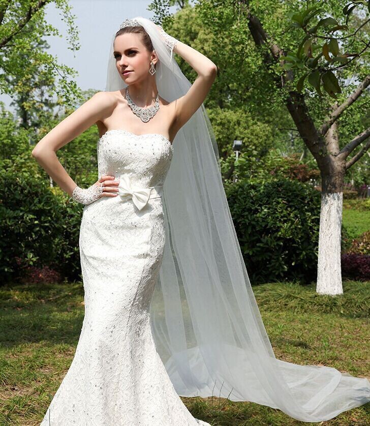 • Ivory White 3 Meters Long Bridal Veils With Comb 8473205219#