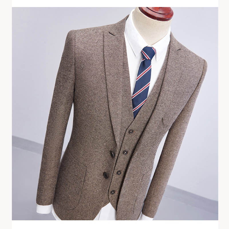 Khaki Slim-Fit 3 Pieces Men's Suits 88211592268#