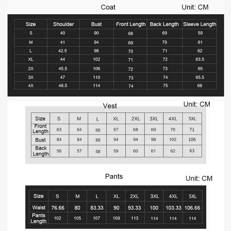 Piece:Three-piece Suit (Coat+Vest+Pants)