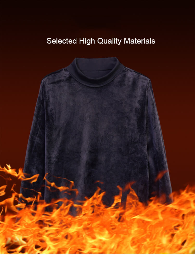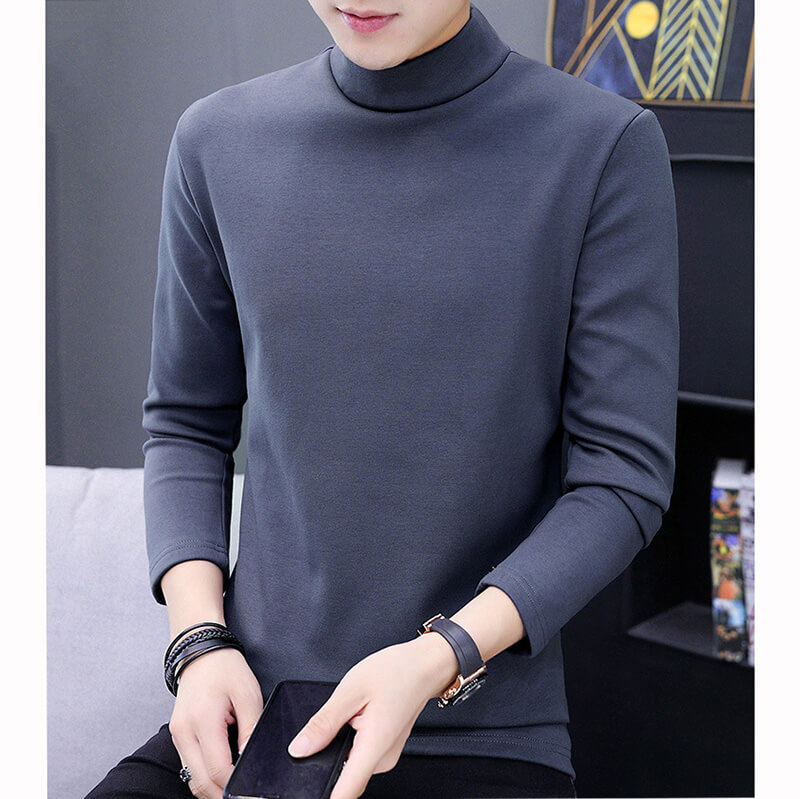 Men's Solid Mock Neck T-Shirt Faux Fur Inside 88211592422#