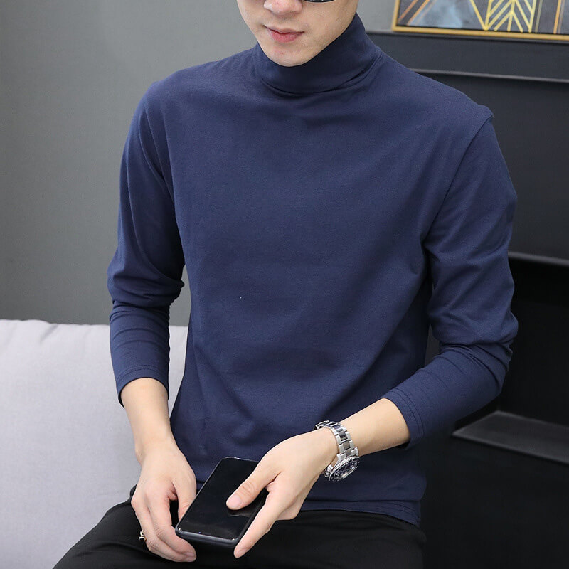 • Men's Solid Turtleneck T-Shirt 88211592421#