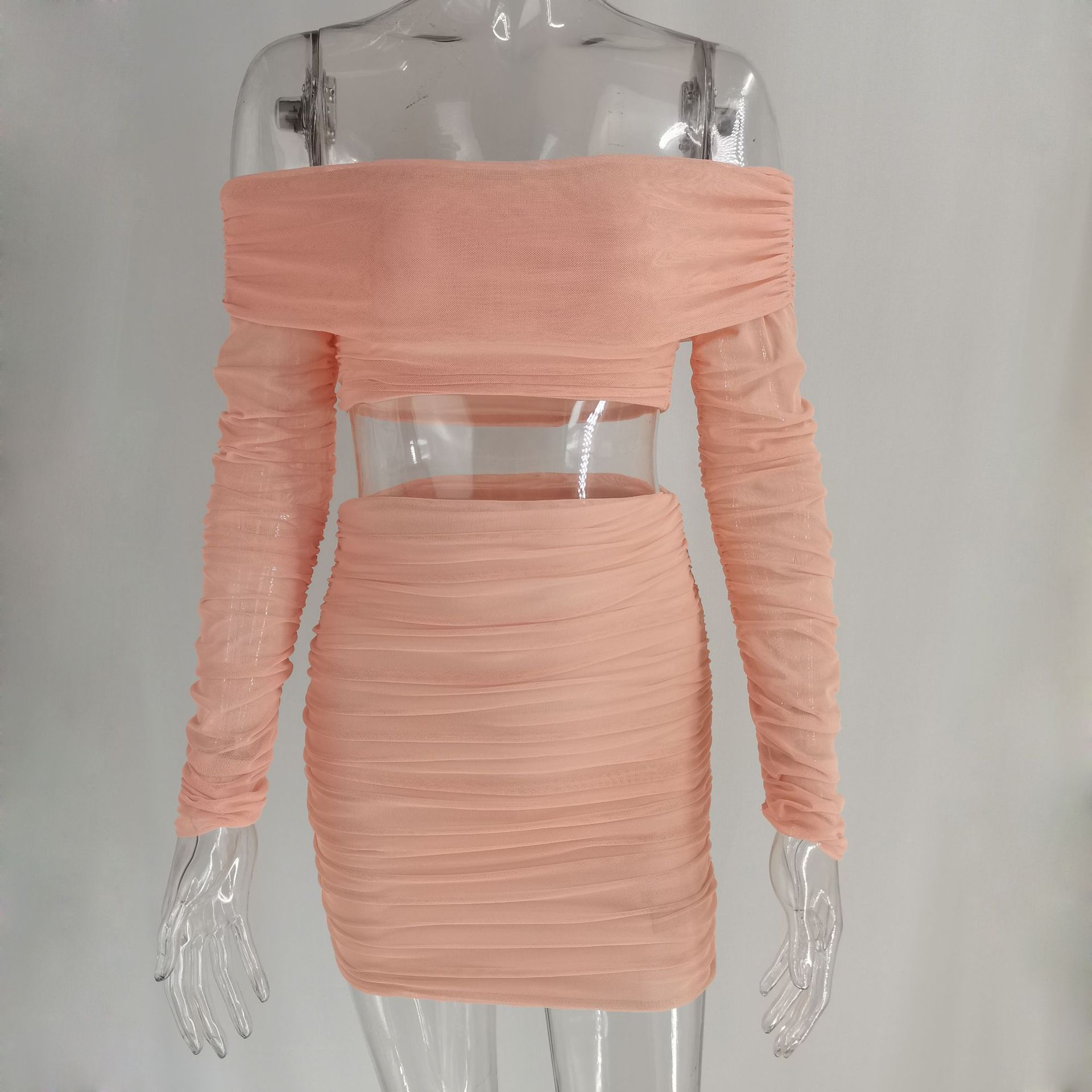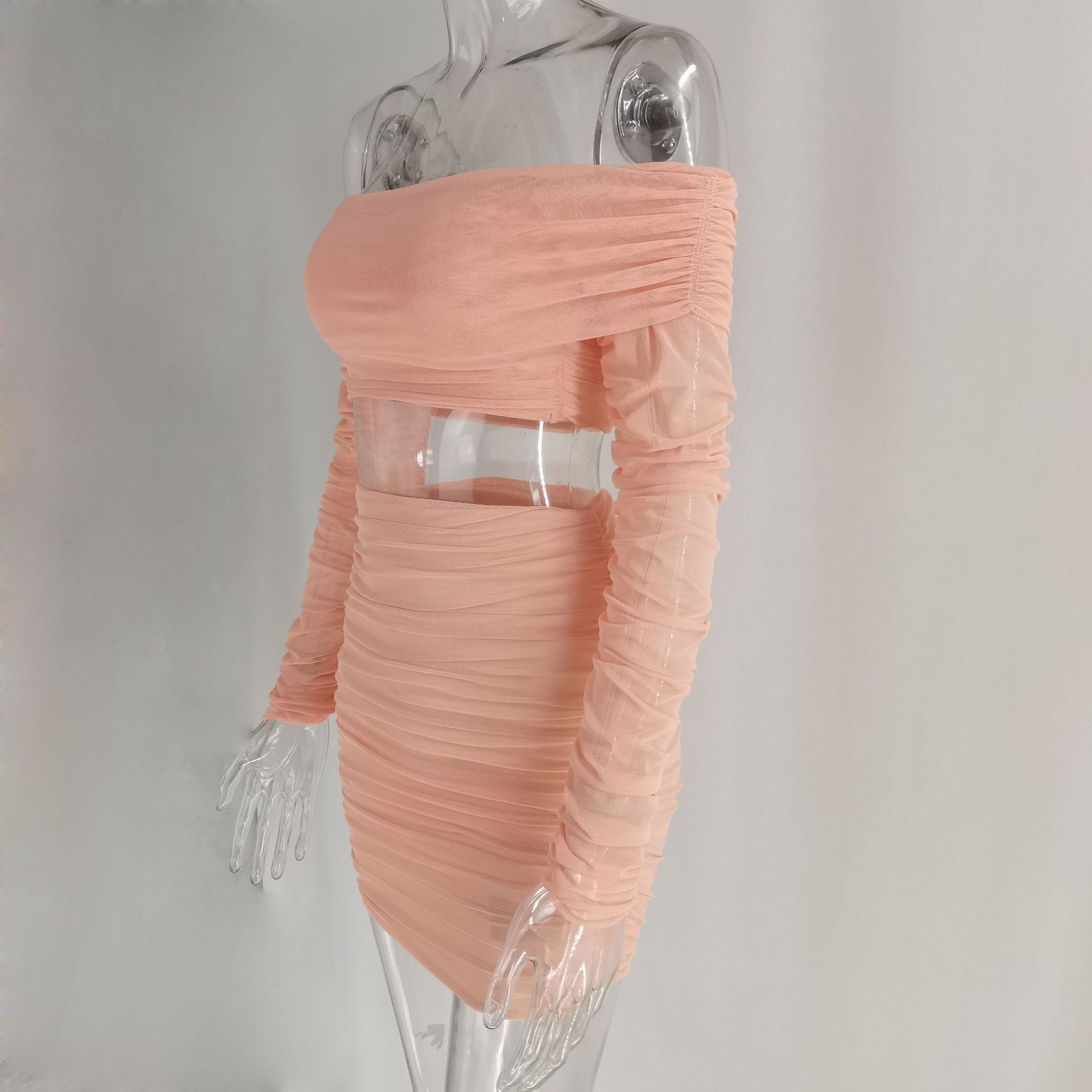 Mini Bodycon Dress 2 piece Long Sleeve 88211592287#
