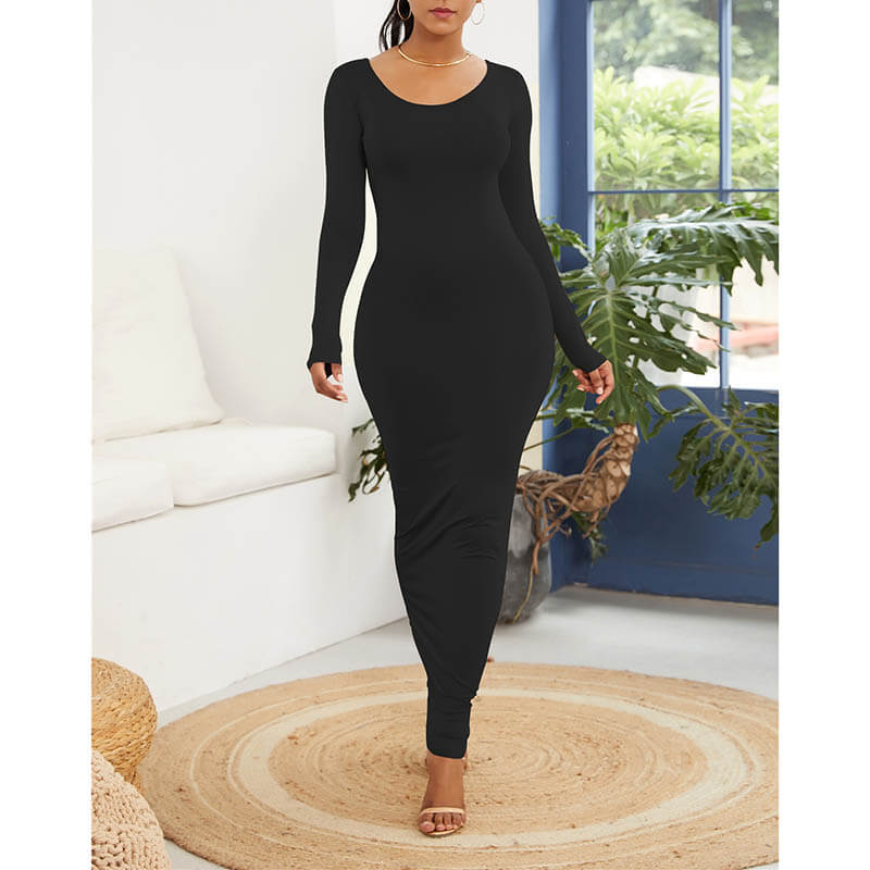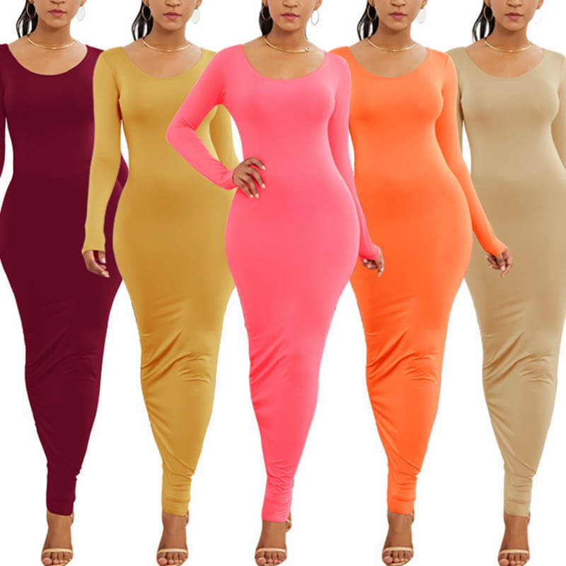 • Multi Color Boat Neck Bodycon Maxi Dress for Women 88211592442#