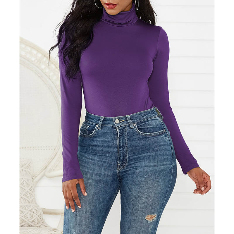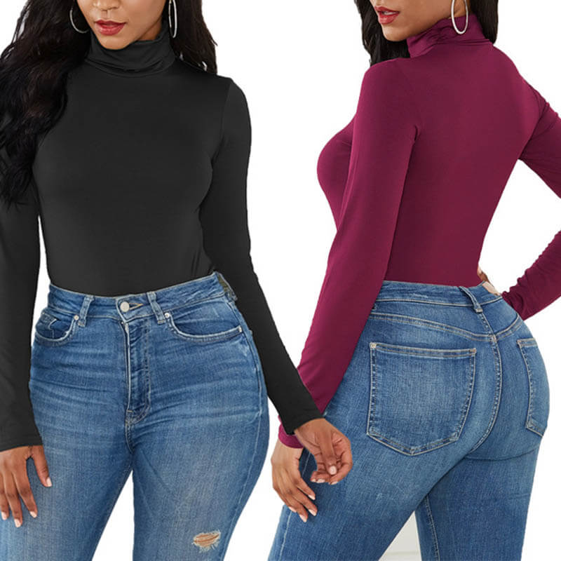 • Multi Color Turtleneck Plain Basic Bodysuit 88211592444#