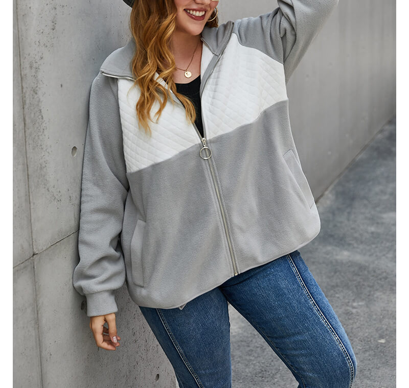 • Plus Size Color Block Jacket in Grey 88211592410#