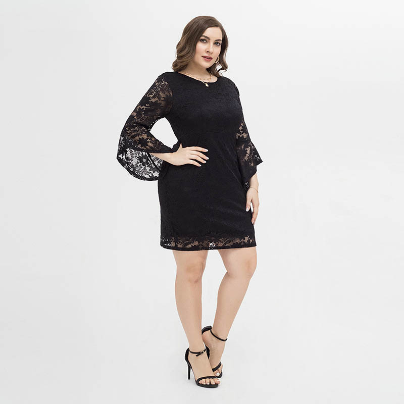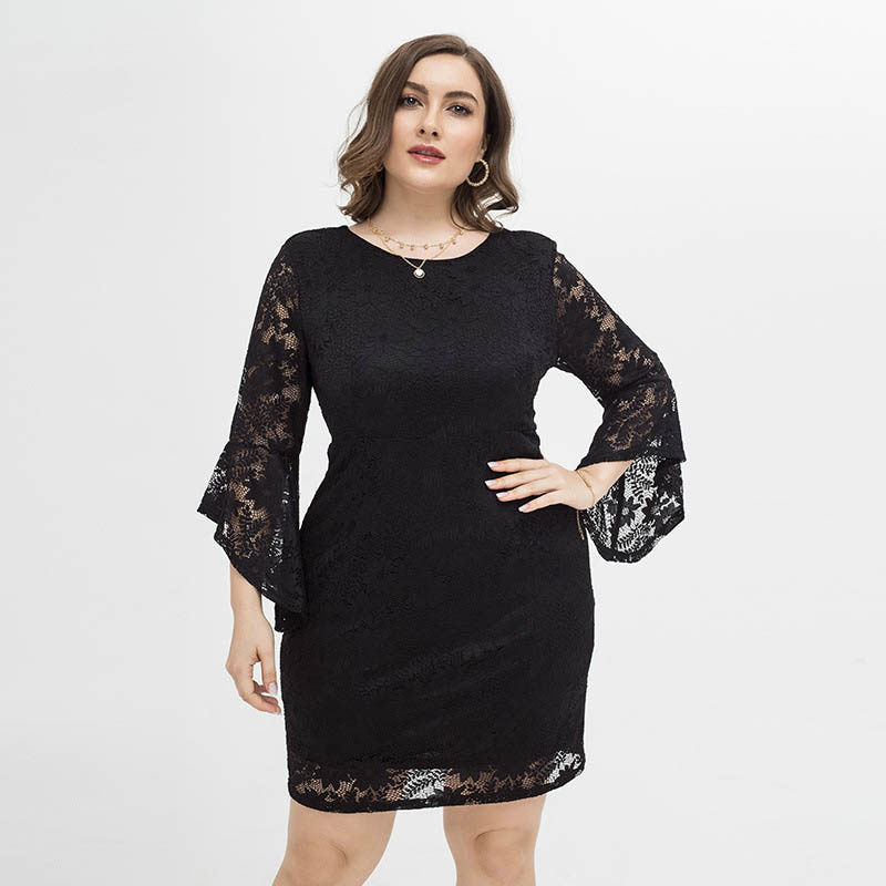 Details:Illusion,Lace,Plus Size,Curve,Bell Sleeve