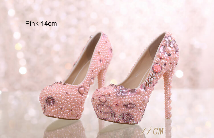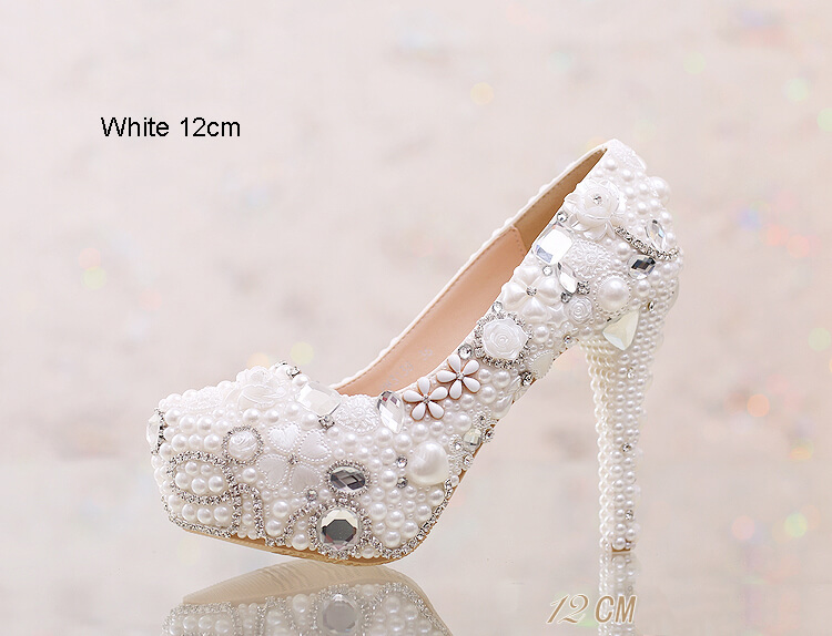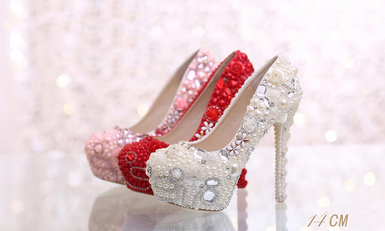 Red Women's Dress Shoes Bridal Wedding Dress Shoes Handmade Luxury Pearls Cheap Stiletto Heel #8511559318