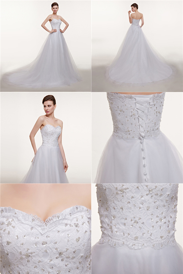 Sparkling Beaded Strapless A Line Wedding Dresses 8498390896#
