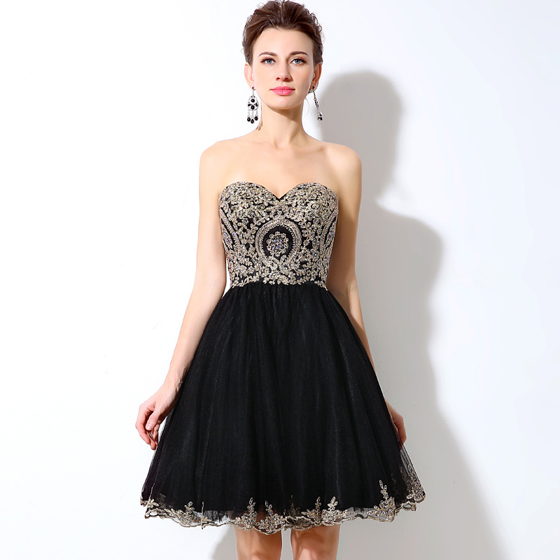 Sparkling Black Strapless Short Cocktail Party Prom Dresses 8482896921#