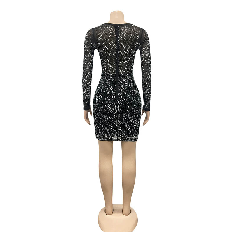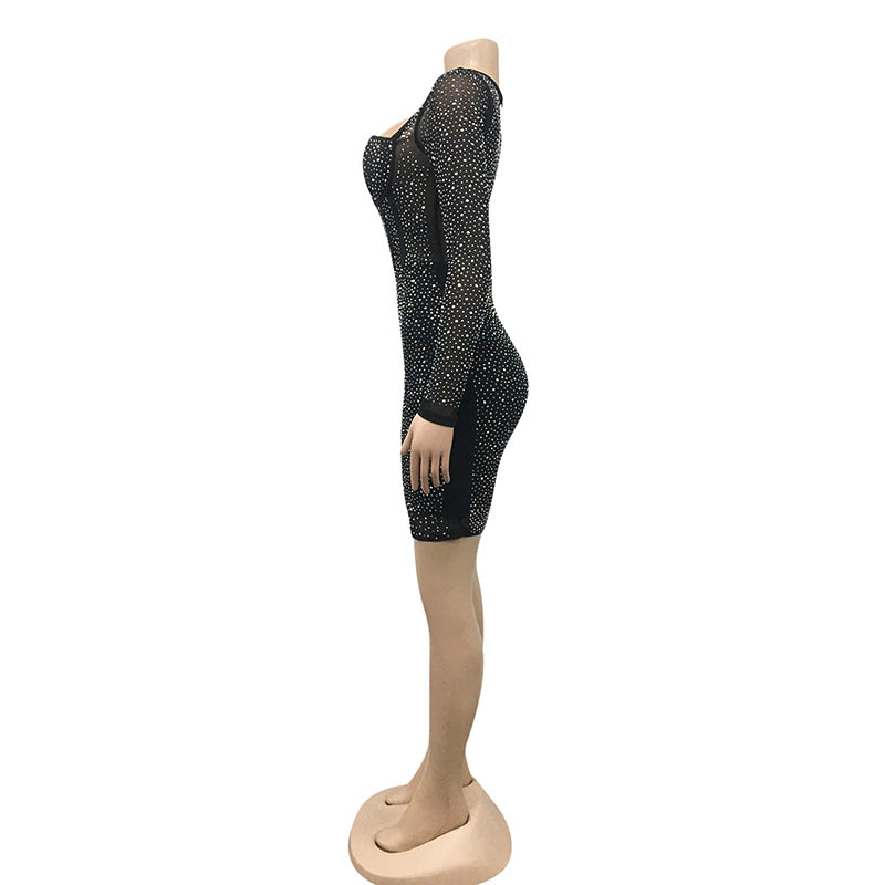 • Sparkling Rhinestones Illusion Party Dress in Black 88211592450#