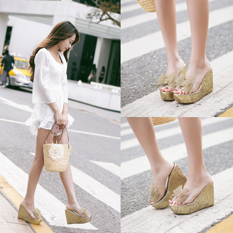 Sparkly Open Toe Wedge Mules #88211592252