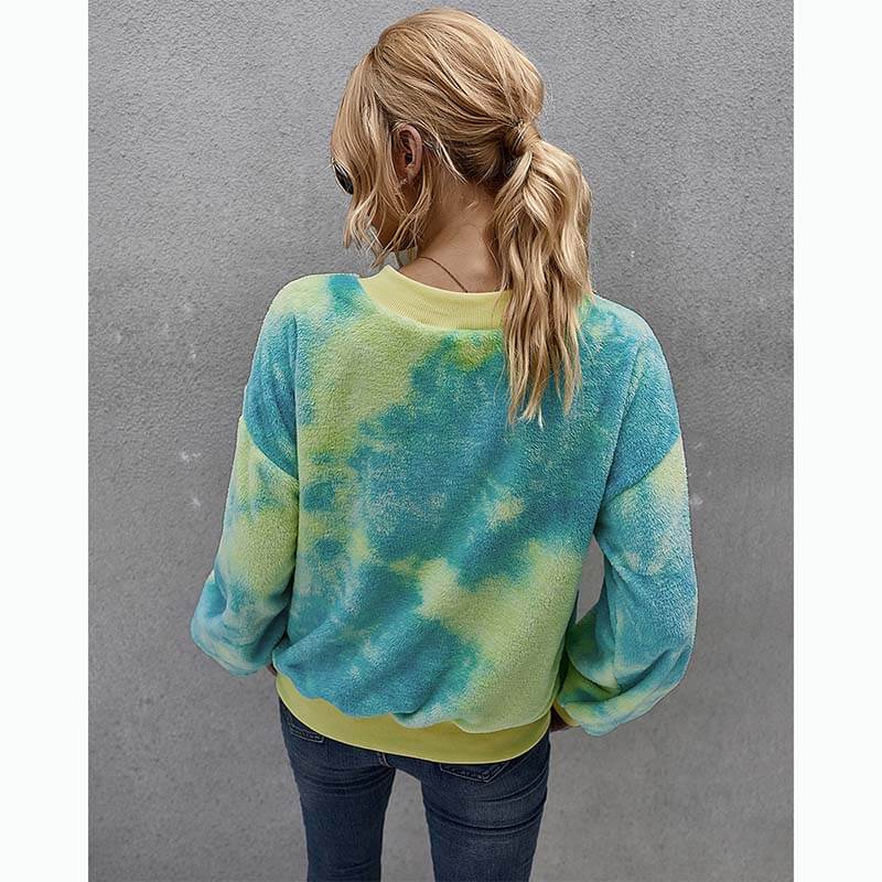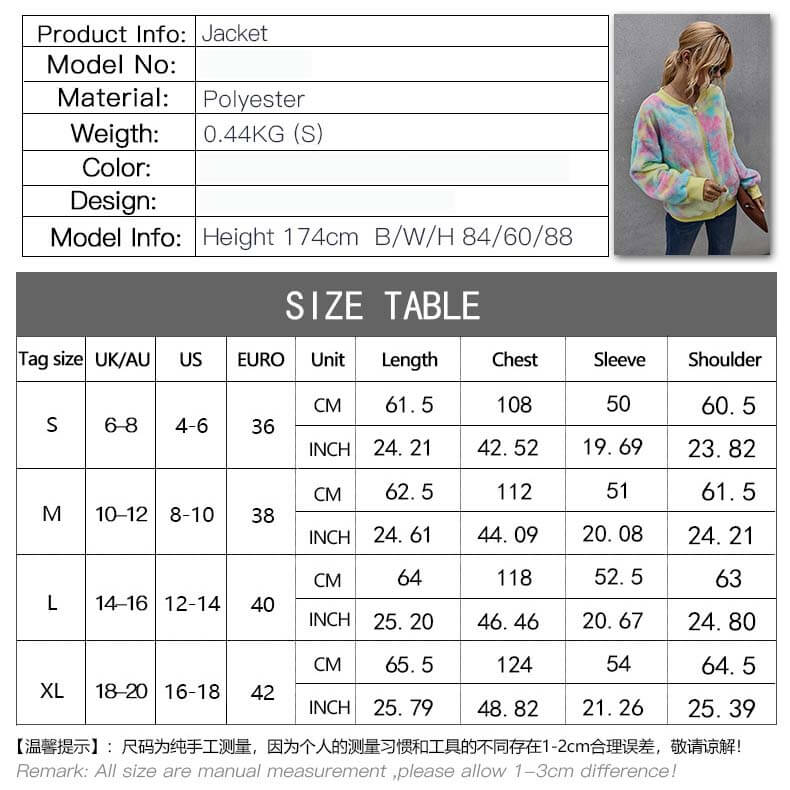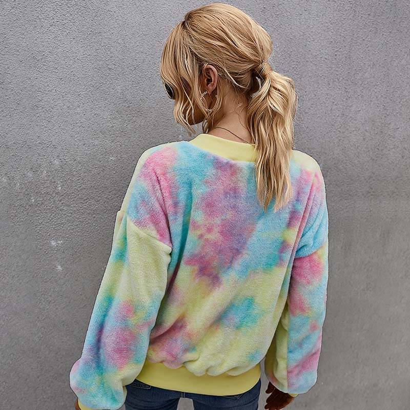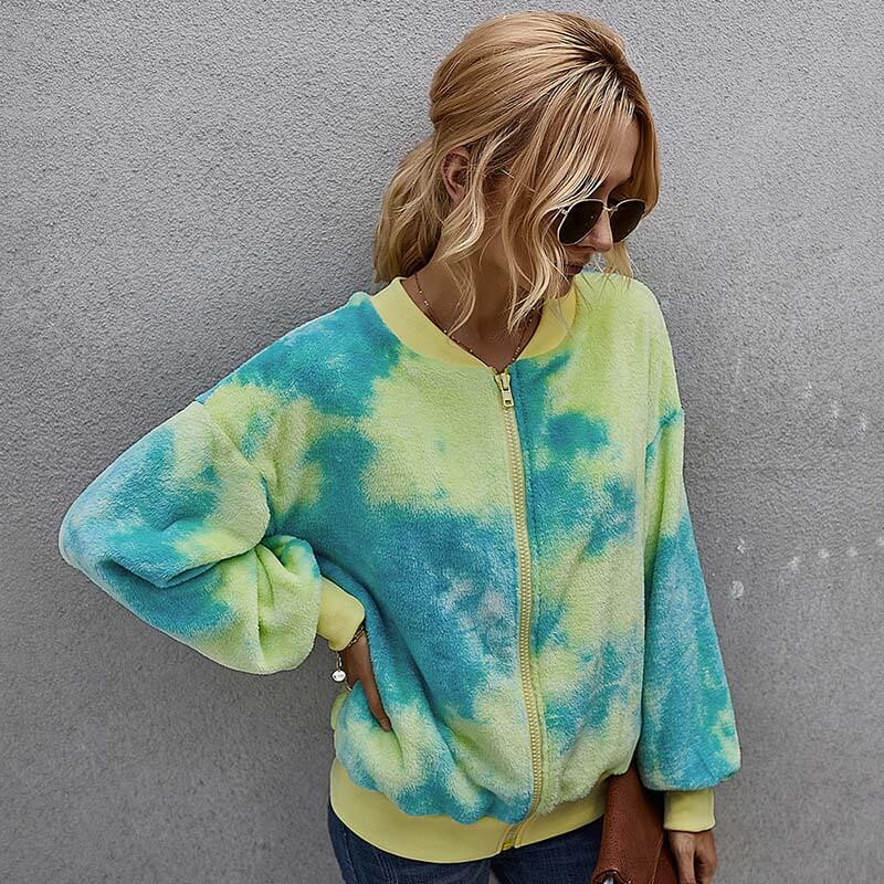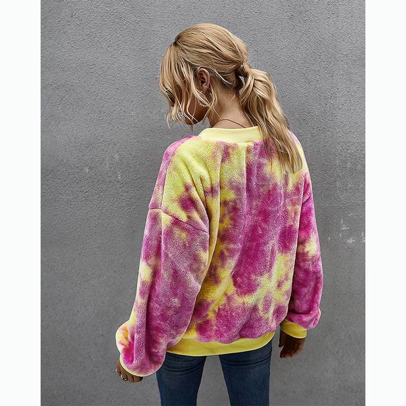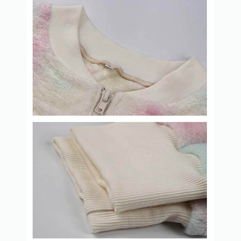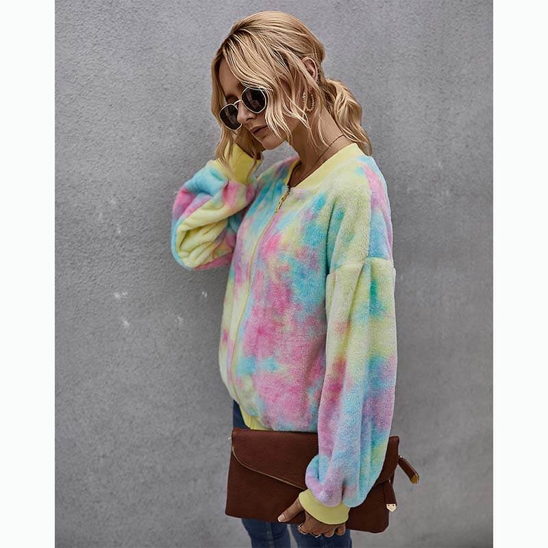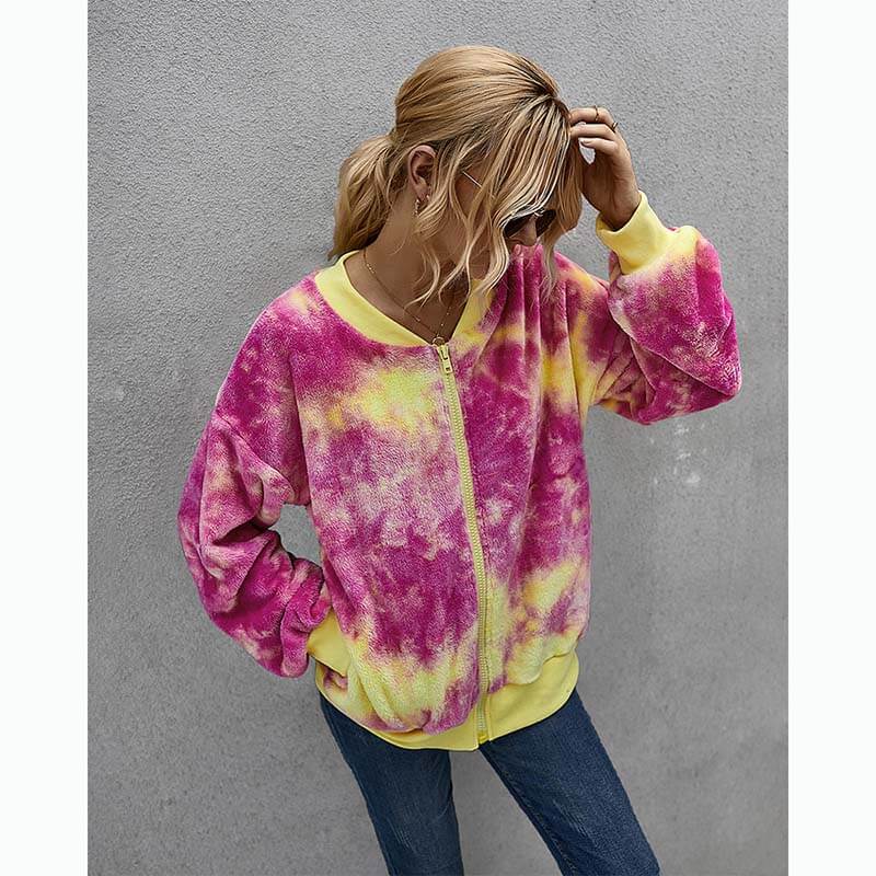 • Tie Dye Faux Fur Zipper Up Jacket 88211592376#