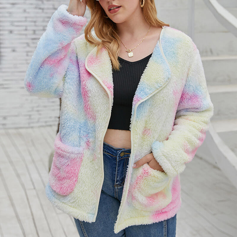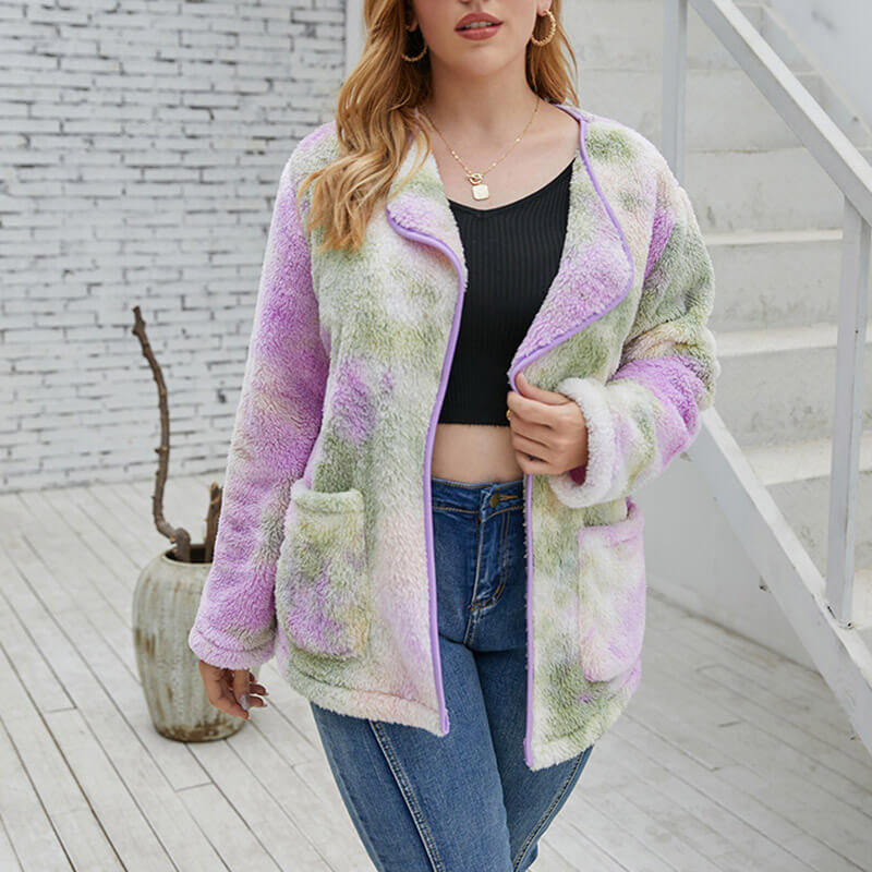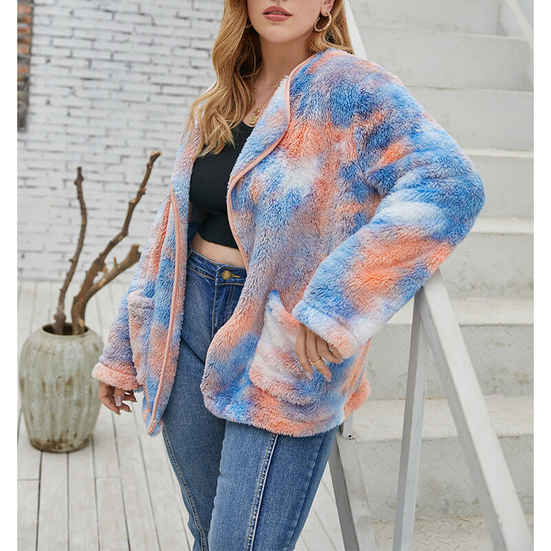 • Tie Dye Teddy Jacket for Plus Size Girl 88211592407#