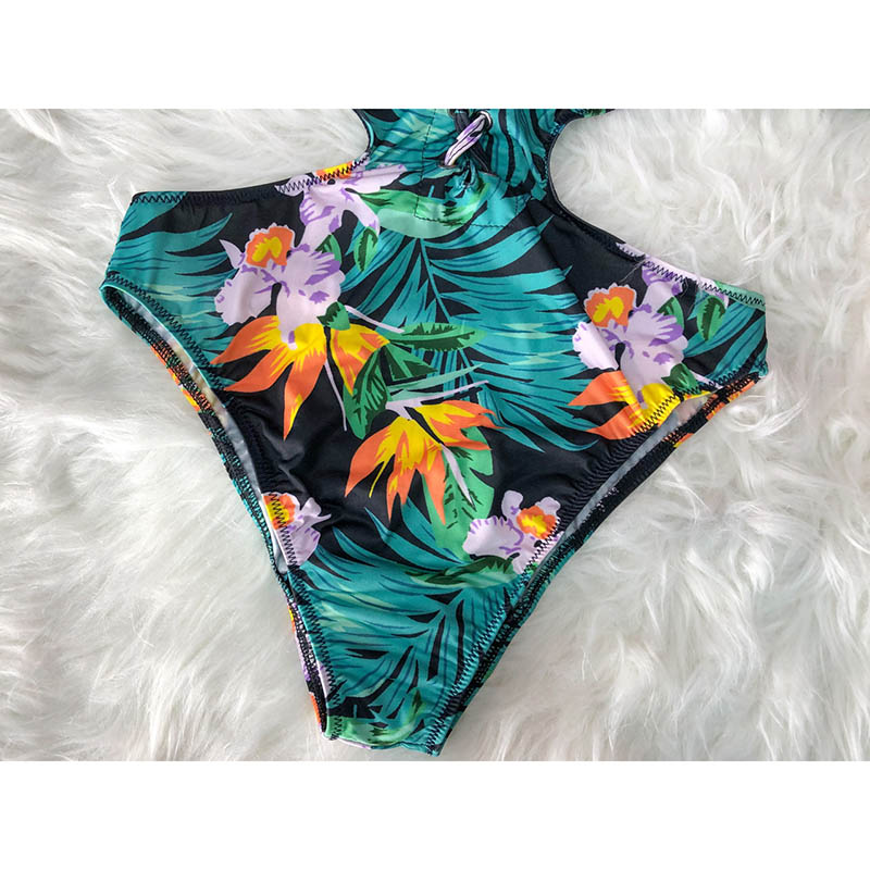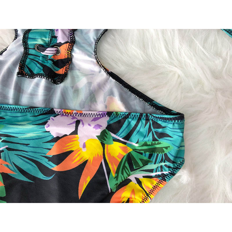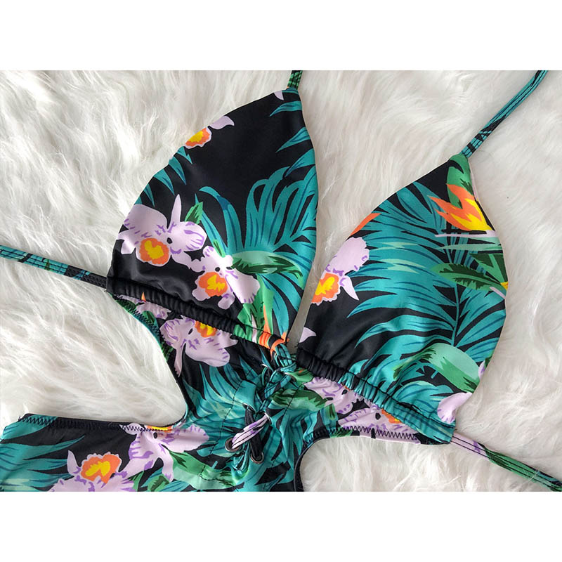 • Tropical Print Halter Crisscross Lace-Up Swimsuit #88211592149