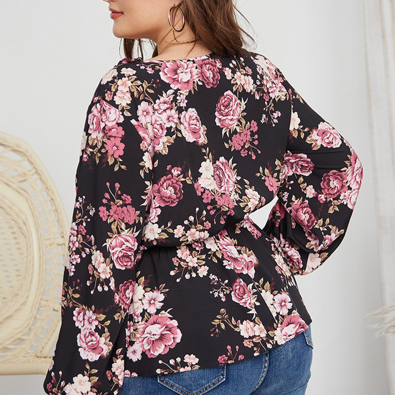 V Neck Floral Print Blouse Top Plus Size 88211592439#