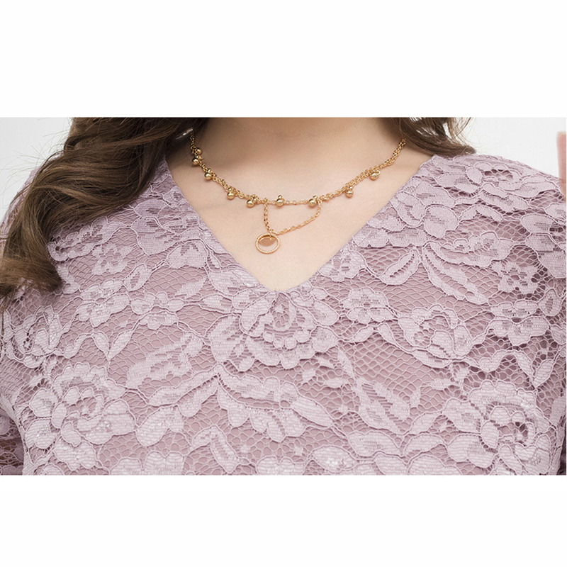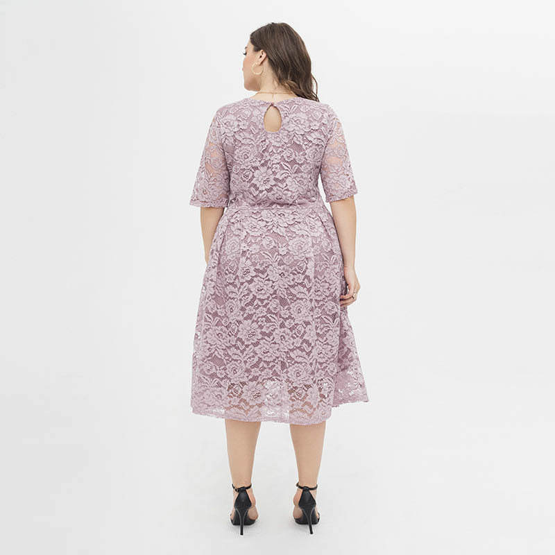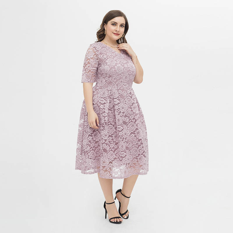 V Neck Half Sleeve All Over Floral Lace Party Dress Plus #88211592140