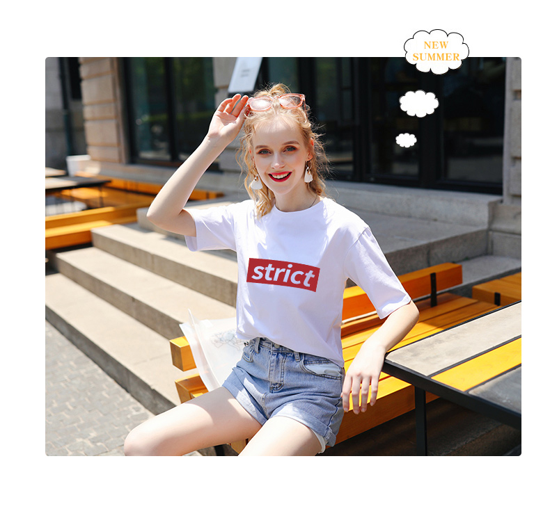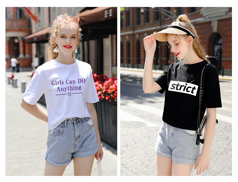 • Women Print T Shirt Women Letter Top Summer Short Sleeve Shirt Casual Fashion T-shirt Cotton T shirts Ladies Tee 8888505934#