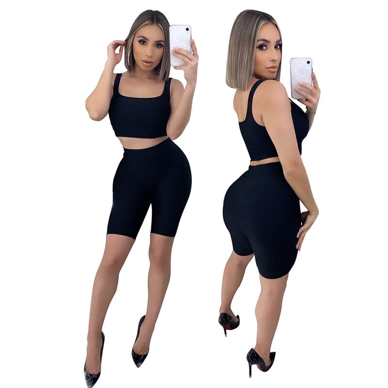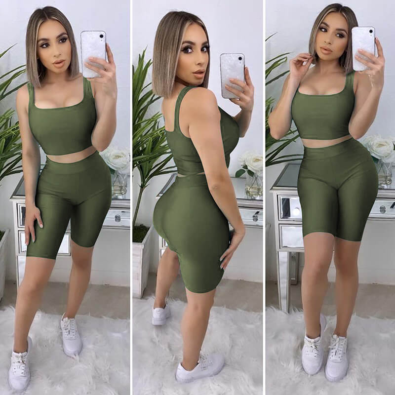 • Yoga Suits Short Pants 2 pieces Solid Color Sportswear #88211597379
